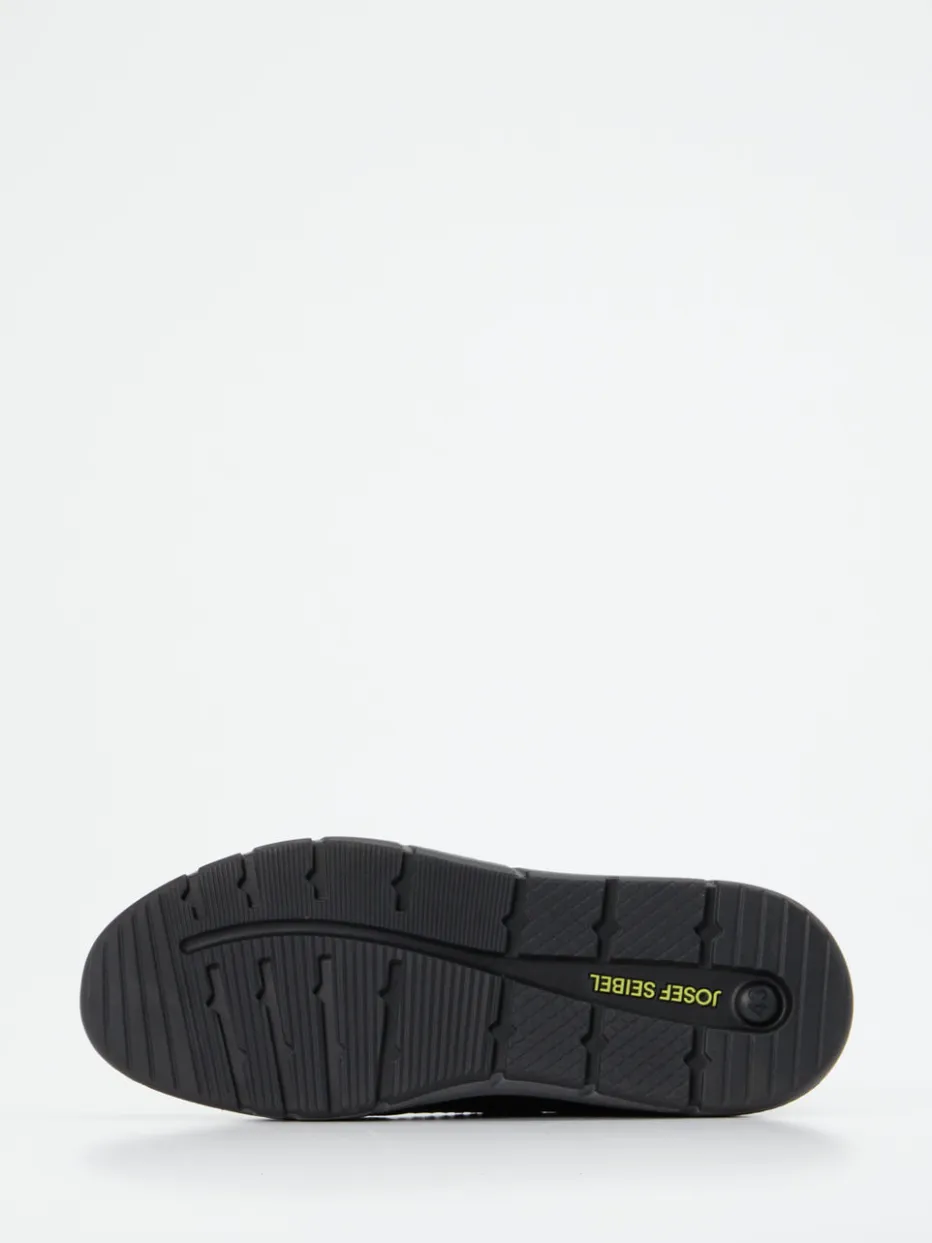 Casual-Komfort für jeden Tag.Der Herren-Slipper von Josef Seibel verbindet Komfort mit unaufdringlicher Ästhetik. Für entspannte Freizeitmomente bietet dieser Slip-On dank hochwertigem Nubukleder mit samtiger Oberfläche optimalen Tragekomfort. Die klassische, abgerundete Form in kräftigem Schwarz wird durch Kontrastnähte und ein braunes Fersendetail aus Glattleder akzentuiert. Elastikeinsätze erleichtern den Einstieg, während die profilierte Gummisohle rutschhemmend wirkt. Innen sorgt atmungsaktives Textilfutter für ein angenehmes Fußklima. Perfekt kombinierbar mit Stretch-Jeans oder Softshell-Jacke. Ein durchdacht gefertigter Allrounder mit Fokus auf Alltagstauglichkeit und Komfort.