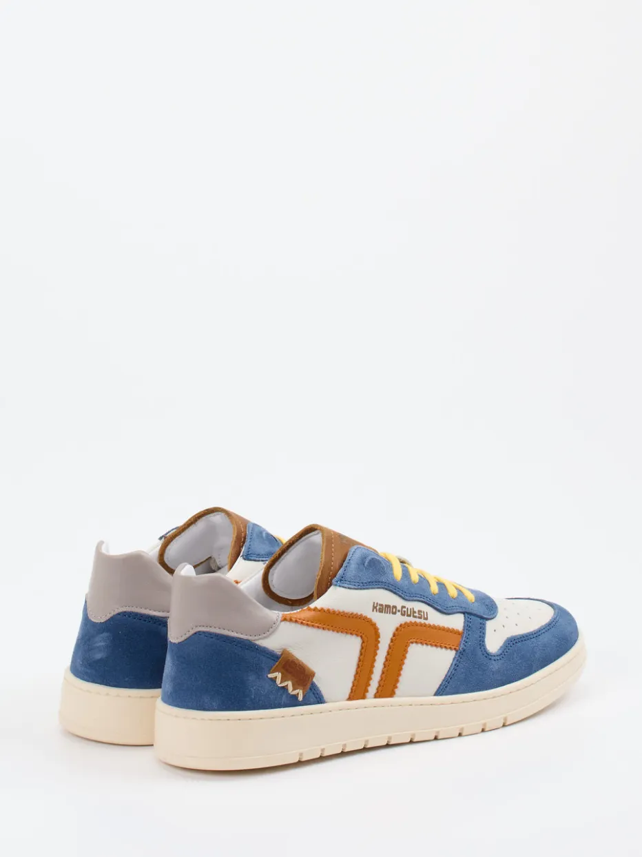Design trifft Alltagstauglichkeit.Kamo Gutsu interpretiert mit diesem Sneaker die klassische Low-Top-Silhouette neu. Für stylische Stadtwege oder entspannte Freizeitmomente vereint der Schuh cremeweißes Veloursleder mit glatten Overlays in Cognac, Stahlblau und Orange. Die perforierte Oberfläche sorgt für Atmungsaktivität, während Kontrastnähte und sonnengelbe Schnürsenkel den Color-Blocking-Effekt unterstreichen. Der gepolsterte Schaftrand und das herausnehmbare Lederfußbett erhöhen den Komfort, die flexible Gummisohle erleichtert jeden Schritt. Ein Retro-inspirierter Streetwear-Sneaker für trendorientierte Looks. Mit stimmigem Design und Premium-Materialien unterstreicht Kamo Gutsu seine Liebe zum Detail.