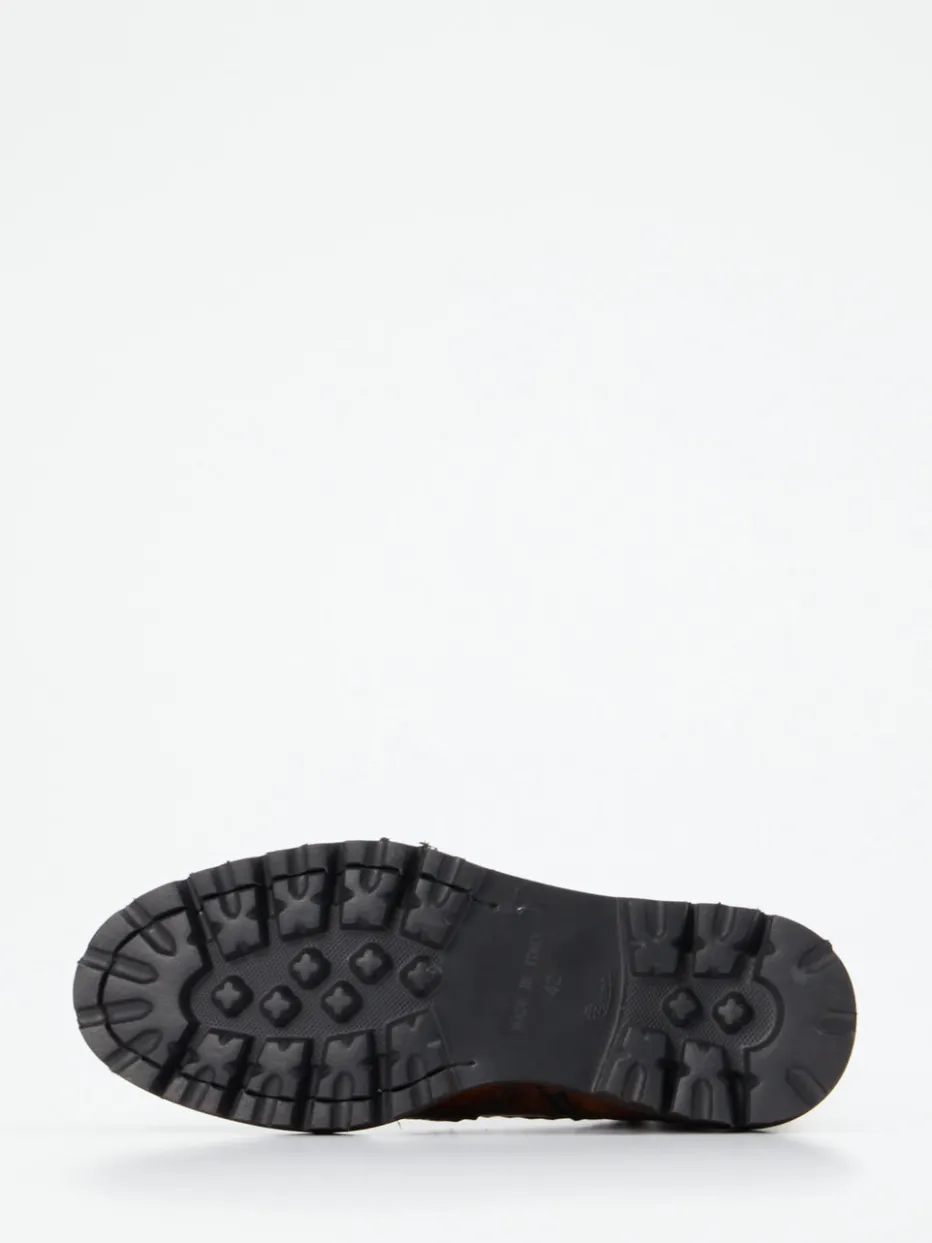 Ideal für urbane Pendler oder stilbewusste City-Termine vereint der Schnürboot hochwertiges, glänzendes Büffelleder mit changierender Patina in Mittel- und Dunkelbraun. Das Fullbrogue-Muster mit Flügelkappe und feiner Lyralochung bringt britische Heritage-Eleganz in die moderne Garderobe. Eine Kombination aus Siebenlochschnürung, Metallösen und Innenreißverschluss erleichtert den Einstieg. Die stark profilierte Gummisohle sorgt auch auf nassem Untergrund für sicheren Stand. Das angenehm warme, fellähnliche Innenfutter empfiehlt sich für kühle Temperaturen. Stimmig zu Wollmantel und Lederaccessoires.