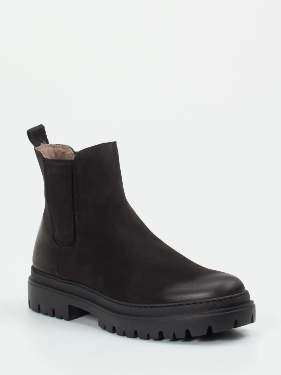 Urbaner Look für jeden Tag.Konstantin Starke präsentiert elegante Chelsea Boots für Damen – gefertigt aus schwarzem Nubukleder mit samtig-matter Oberfläche. Ob Büroalltag oder Spaziergang durch die Stadt: Die klassische, knöchelhohe Silhouette in Uni-Schwarz passt nahtlos in minimalistische Looks. Seitliche Elastikeinsätze und eine Zuglasche am Schaft erleichtern das Anziehen, während das Textilfutter für angenehmen Tragekomfort sorgt. Die profilierte Gummisohle bietet sicheren Halt auf herbstlichen Wegen und unterstreicht den angesagten Chunky-Style. Ideal kombiniert mit Kaschmirmantel oder schlichter Lederhandtasche. Ein vielseitiger City-Boot mit klarer Linienführung und modernem Streetwear-Charakter.