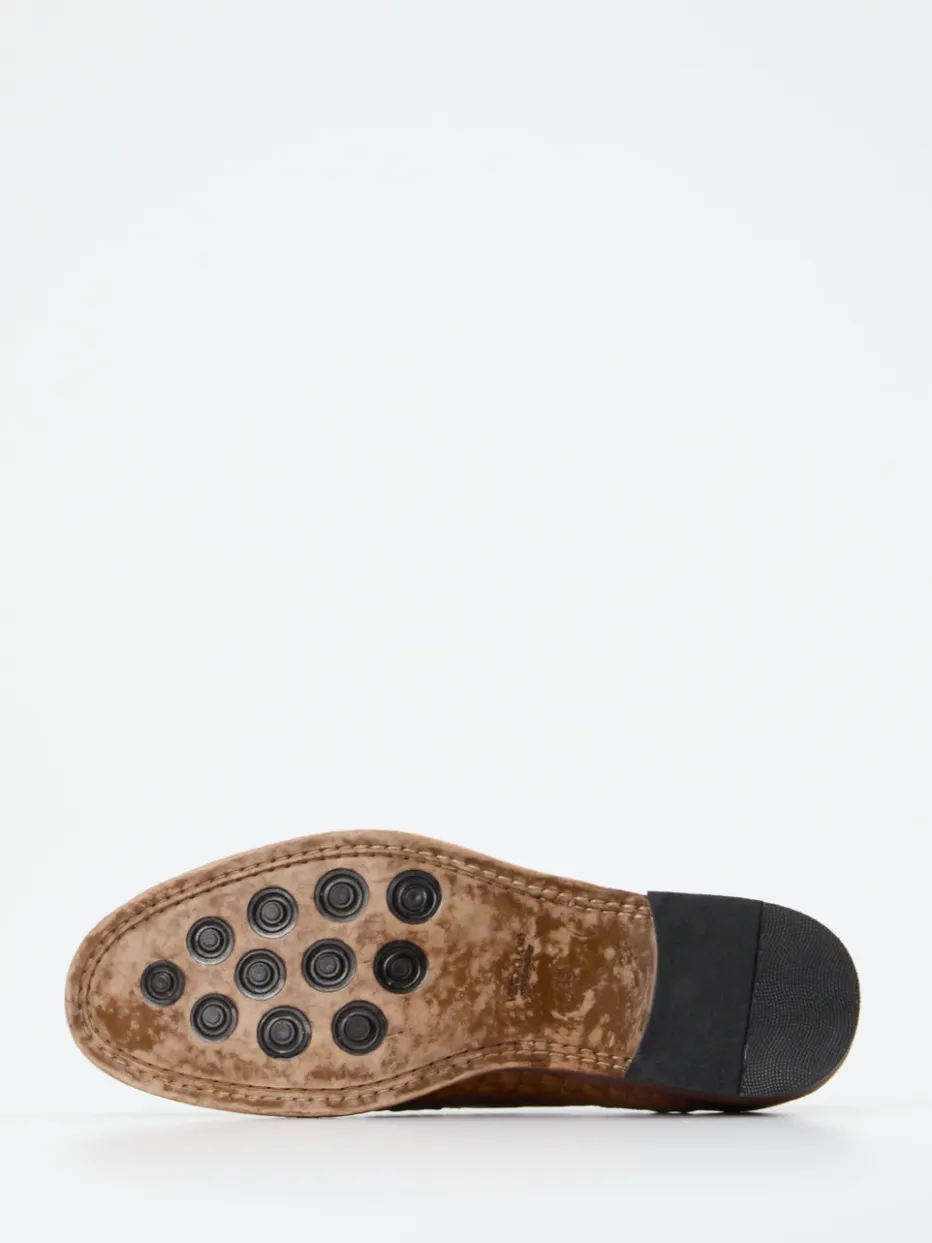 Handwerklich geprägt, verbindet dieser Flechtleder-Derby hochwertige Materialien mit einer klassischen Formgebung. Ideal für stilbewusste Herren mit Sinn für feine Details.