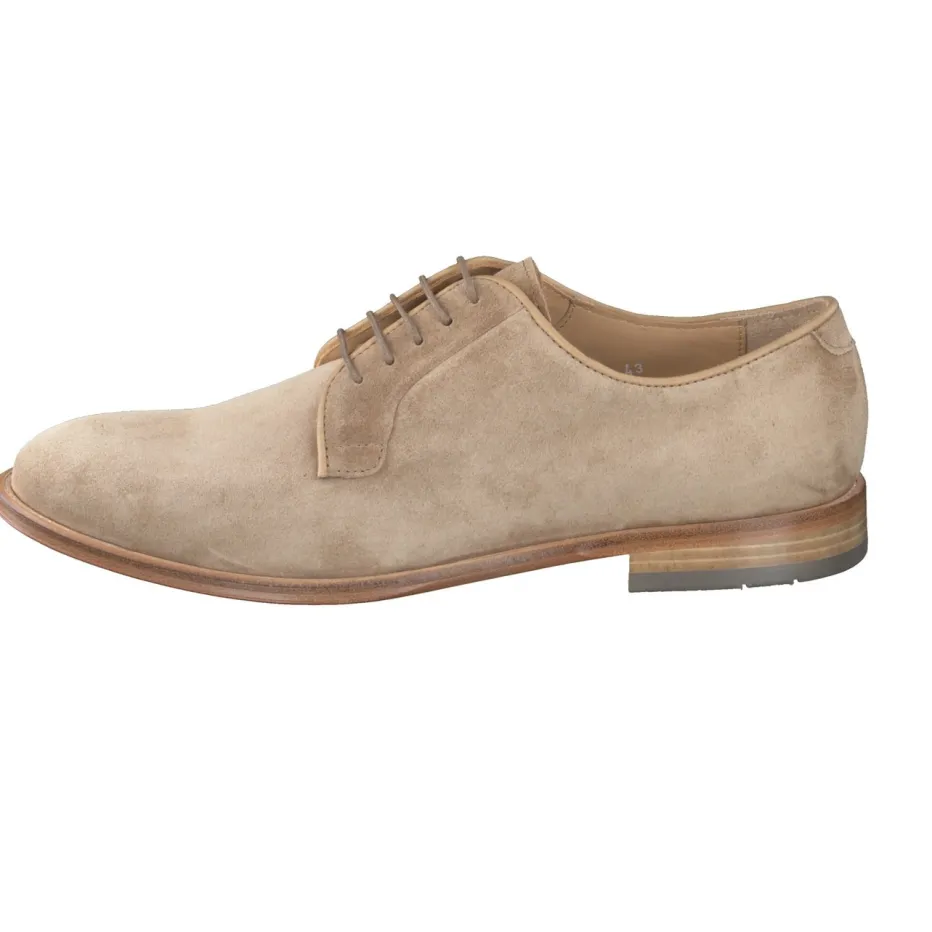 Der cleane Derby im sandfarbenen Velours überzeugt mit handwerklicher Verarbeitung und smartem Business-Charakter – ein Highlight für stilbewusste Minimalisten.
