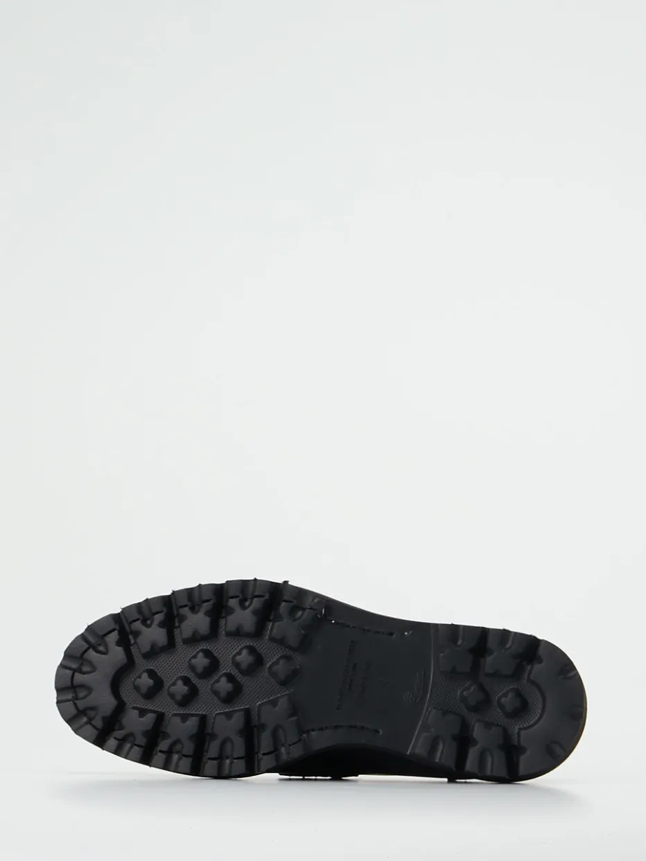 Die kraftvoll profilierte Sohle bringt moderne Dynamik in den klassischen Penny-Loafer-Look. Hochwertiges Büffelleder mit glänzender Oberfläche verleiht dem Modell eine elegante Präsenz.