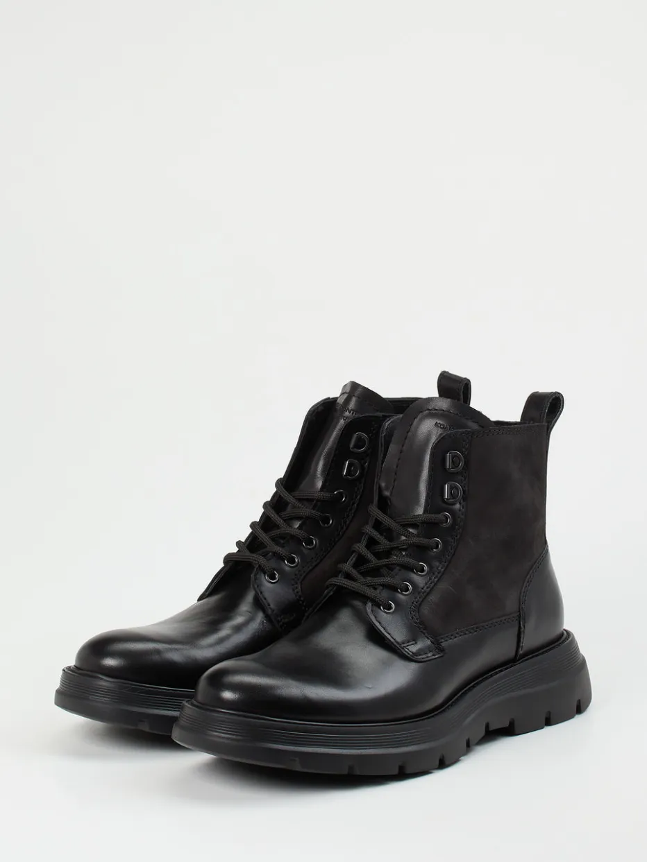Markanter Materialmix für urbanen Komfort.Die Marke Konstantin Starke präsentiert klassische Herren-Schnürboots mit Utility-Einschlag. Für herbstliche Spaziergänge wie städtische Streifzüge konzipiert, kombinieren diese schwarzen Boots glänzendes Kalbleder mit samtig angerautem Veloursleder am Schaft. Die matte Oberfläche wird von tonalen Nähten und Metallösen akzentuiert, während die robuste Gummisohle mit markanter Profilierung für sicheren Grip sorgt. Ein seitlicher Reißverschluss erleichtert das Anziehen. Die knöchelhohe Silhouette unterstreicht den lässig-robusten Charakter – ideal zu dunklen Jeans und Lederjacke. Konstantin Starke steht hier für stilsichere Alltagstauglichkeit mit hohem Komfortanspruch.