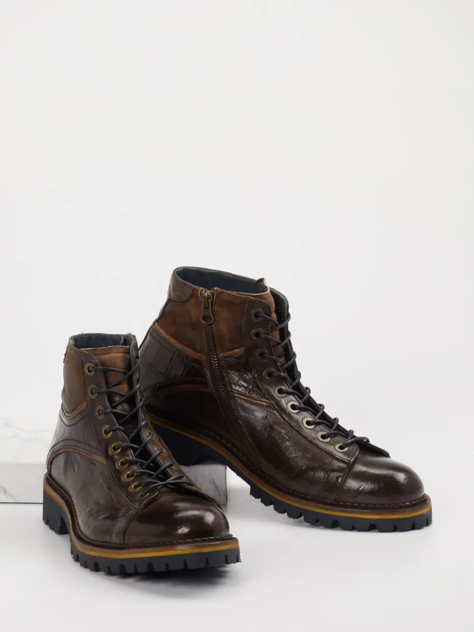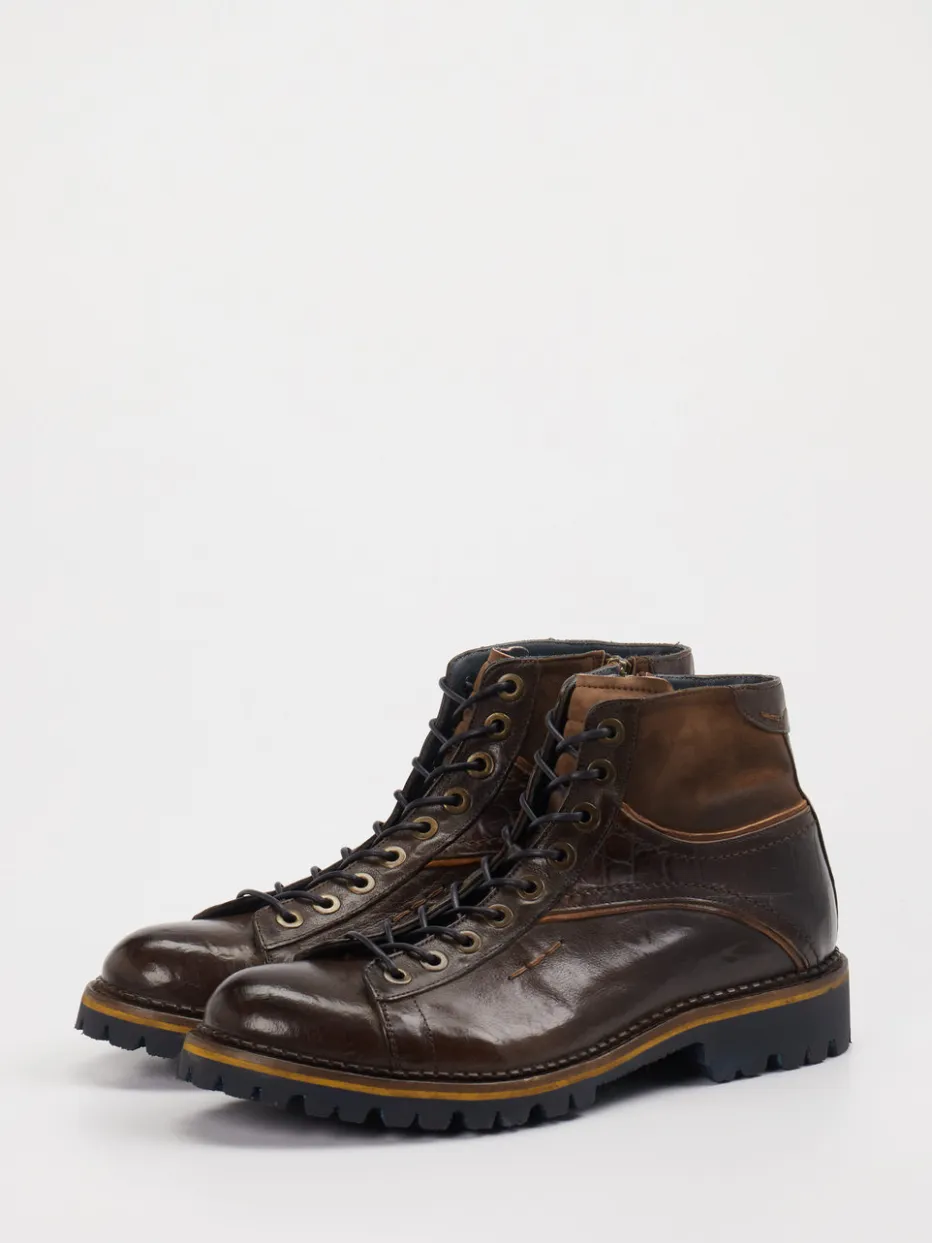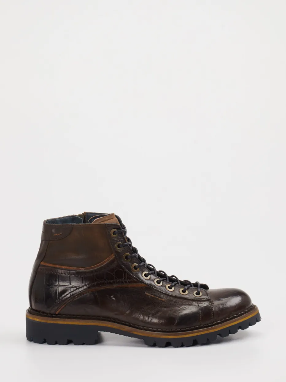 Hochwertiges Kalbleder in glänzender Krokoprägung und markante Profilsohle – dieser robuste Herrenboot vereint Design mit Funktion für anspruchsvolle City-Styles.