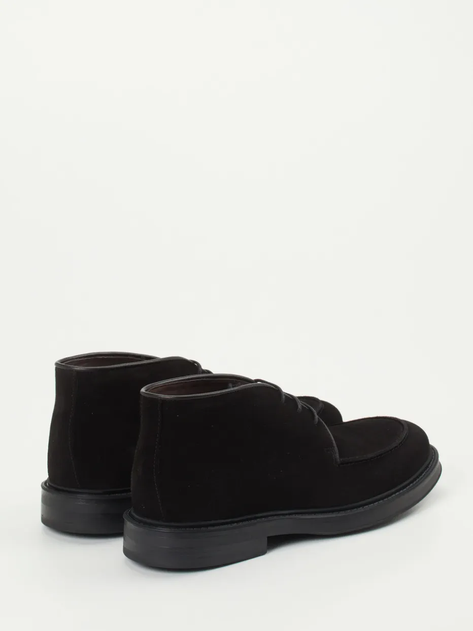 Ob im Büroalltag oder bei urbanen Freizeitmomenten – diese Boots sind durch ihr edles, samtig angeschliffenes Veloursleder nicht nur optisch ein Highlight. Das tiefschwarze Obermaterial, die klassische Passform mit Mokassinnaht sowie die fein profilierte Gummisohle bilden ein stilvolles Gesamtbild, das sich unter anderem am Quiet Luxury Trend orientiert. Ein weiches Kalblederfutter mit gepolstertem Fußbett sorgt für hohen Tragekomfort. Ideal kombinierbar mit Wollhosen oder cleanen Business-Casual-Outfits.