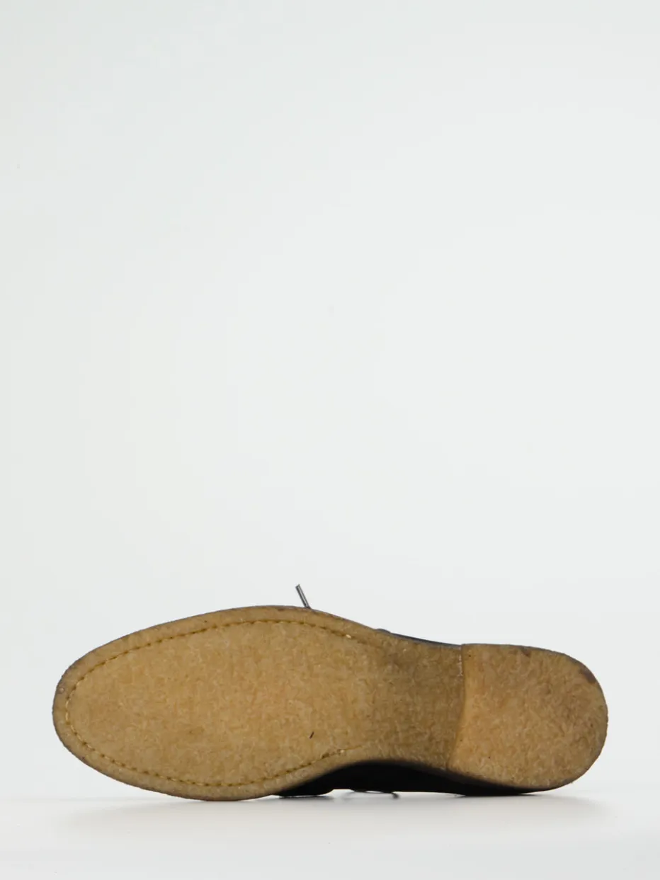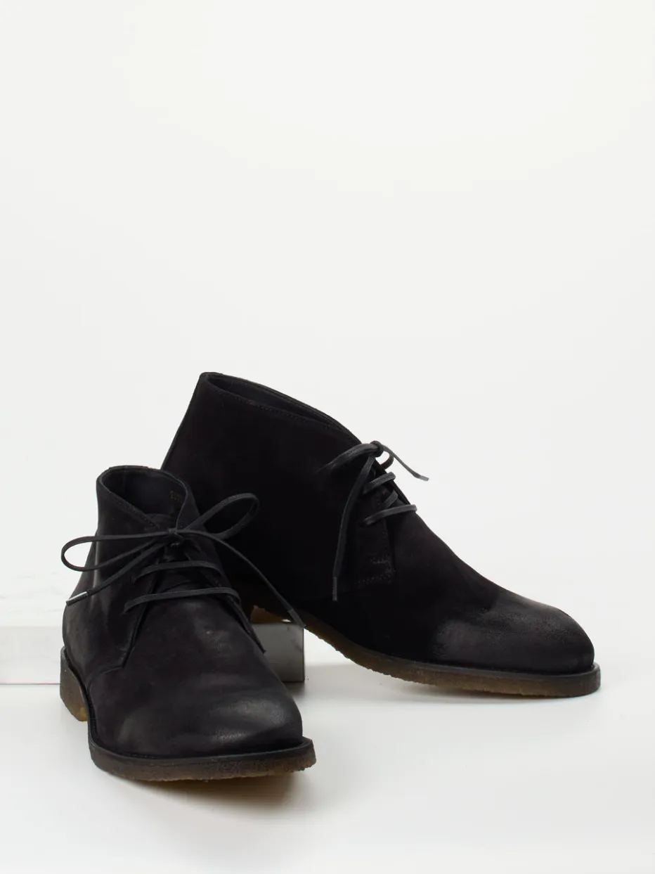 Vielseitiger Klassiker für Alltag und Büro.Konstantin Starke präsentiert mit diesen Schnürboots eine elegante Variante der Desert Boots für Herren. Das Modell aus hochwertigem Veloursleder, samtig-matt in tiefem Schwarz, vereint reduziertes Design mit funktionalem Tragekomfort. Die rund zulaufende, knöchelhohe Silhouette sowie tonige Baumwollsenkel unterstreichen den minimalistischen Heritage-Stil. Eine robuste Gummisohle in Kreppoptik sorgt für alltagstaugliche Dämpfung und sicheres Auftreten. Ideal zu Wollmantel und Leder-Accessoires kombinierbar – besonders für den urbanen Casual-Business-Look. Komfort und zeitloses Design in bewährter Konstantin-Starke-Qualität.