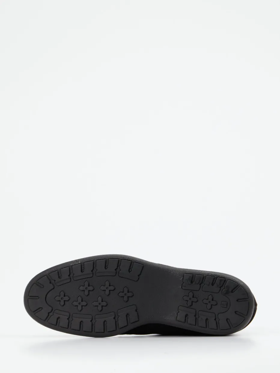Schlichte Wärme für kalte Tage.Konstantin Starke präsentiert mit diesen Schnürboots eine elegant-lässige Interpretation klassischer Desert Boots. Für Spaziergänge an frostigen Tagen oder entspannte Outdoor-Momente bietet das Modell funktionellen Komfort: Hochwertiges Veloursleder, samtig angeschliffen, trifft auf ein wärmendes Lammfellfutter. Die tiefschwarze Farbe betont die klare Silhouette mit rund zulaufender Form und knöchelhohem Schaft. Ton-in-Ton-Nähte, eine textile Zuglasche und eine stabile Gummisohle mit rutschfestem Profil unterstreichen den zurückhaltenden Charakter. Der Stil ist geprägt von Minimalismus und passt ideal zur Soft Utility-Ästhetik der Saison. Besonders harmonisch wirkt das Paar zu Thermohosen oder klassisch geschnittenen Outdoorjacken. Souveräne Herbst-/Winterbegleiter mit souveränem Komfortanspruch und dezentem Stilprofil.