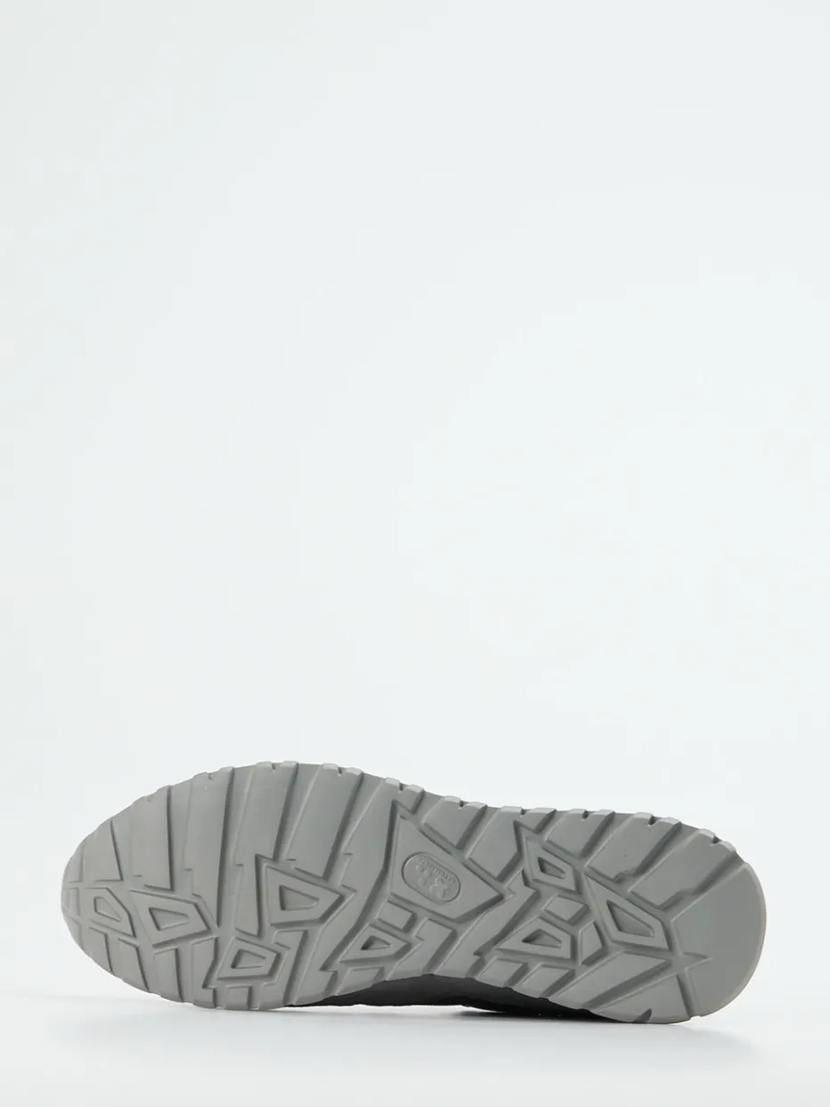 Der smarte Herren-Sneaker kombiniert weiches Veloursleder mit atmungsaktivem Mesh in monochromen Grautönen – für einen stilsicheren Auftritt im urbanen Alltag.