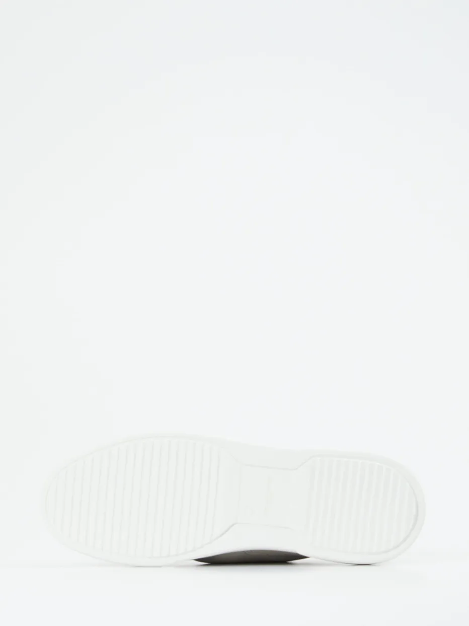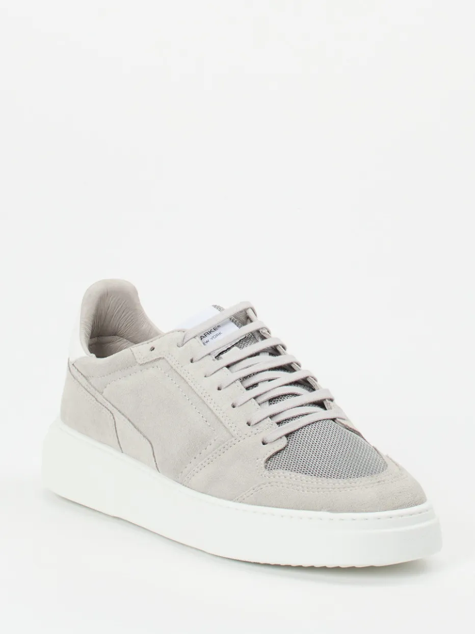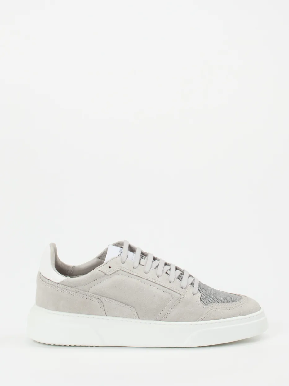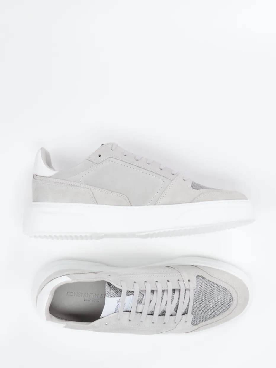 Ideal für entspannte City-Tage überzeugt das Modell durch Veloursleder in Hellgrau, ergänzt um atmungsaktive Mesh-Einsätze mit matter Optik. Die weiße Gummisohle akzentuiert die klare Linienführung und betont die sportlich-klassische Silhouette. Ein gepolsterter Schaftrand sorgt für Tragekomfort, das herausnehmbare lederbezogene Fußbett für individuelle Anpassung. Farbgebung und Design zitieren den Quiet-Luxury-Trend sowie Monochrome Looks der SS24-Saison. Besonders passend zu weißen Relaxed-Fit-Hosen oder Overshirts in Graunuancen.