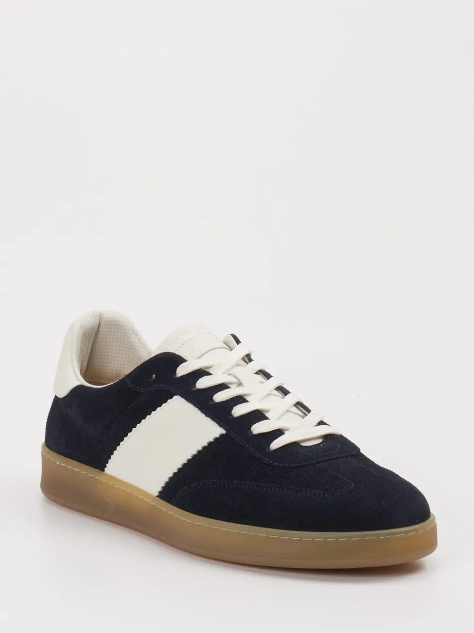 Für entspannte City-Tage oder legere Office-Settings verbindet das Modell dunkelblaues Veloursleder mit offwhitefarbenen Glattleder-Details, ergänzt um eine transluzente Gummisohle. Die weiche, angeraute Oberfläche verleiht Struktur, während die klassische flache Silhouette mit gepolstertem Einstieg und Schnürung für Komfort sorgt. Inspiriert von Retro-Court-Sneakern trifft der Look den Nerv der „Quiet Luxury“-Ästhetik. Kombiniert mit minimalistischen Basics entsteht ein stilvoller Alltagslook.