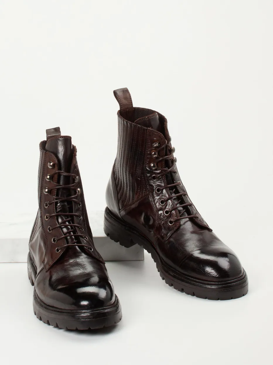 Herbsttauglicher Stil mit Anspruch.Die Marke Lemargo zeigt mit diesen Herren-Schnürboots charakterstarke Combat Boots aus maronenbraunem Büffelleder. Für einen souveränen Auftritt in der Stadt oder bei Outdoor-Aktivitäten: Das glänzende, anschmiegsame Leder verbindet maskuline Ästhetik mit Alltagstauglichkeit. Der knöchelhohe Schaft mit elastischem Rippstrick-Einsatz sorgt für passgenauen Halt, während die durchgenähte Gummisohle mit markantem Profil sicheren Grip liefert. Details wie Metallösen, Ton-in-Ton-Nähte und Zuglasche unterstreichen das Heritage-inspirierte Design mit Workwear-Note. Besonders gut kombinierbar zu Raw Denim und Lederjacke. Ein stilvoller Begleiter mit italienischem Qualitätsanspruch und funktionalem Komfort.