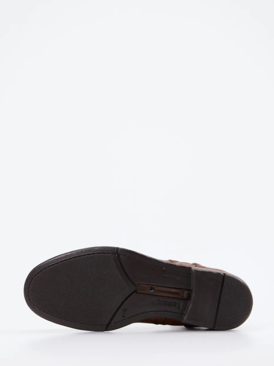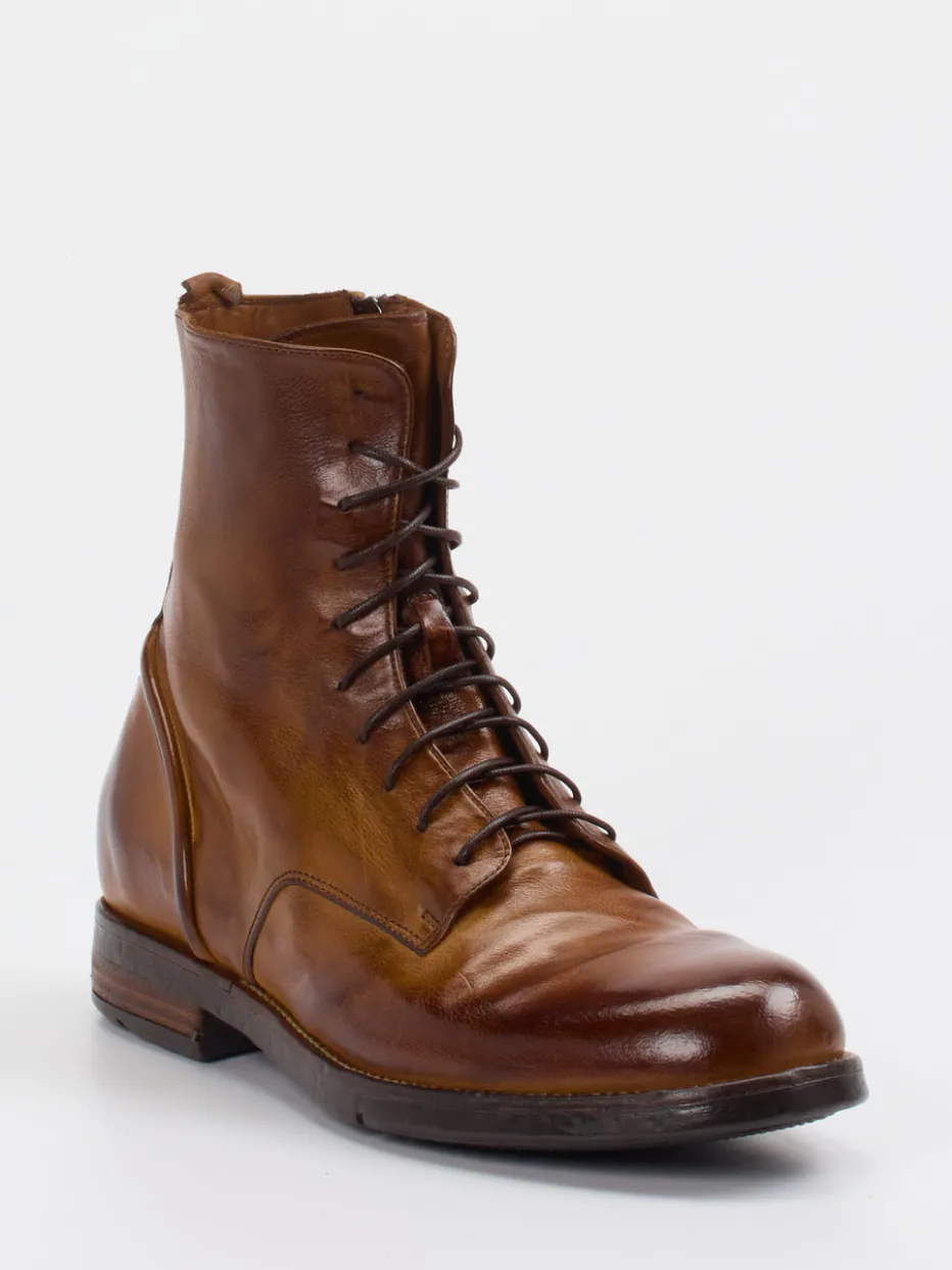 Handwerk und Stil auf einem neuen Niveau.Lemargo bringt mit diesem geschnürten Herrenstiefel einen eleganten Ankle Boot in klassischer Form. Ideal für den Übergang von Büroalltag zu urbanem Freizeitlook: Das cognacbraune Büffelleder strahlt durch das handgefertigte Patina-Finish tiefen Glanz und Charakter aus. Die schmale Silhouette wirkt subtil maskulin; kombiniert mit brauner Schnürung und innenliegendem Reißverschluss ergibt sich hoher Tragekomfort. Die rutschhemmende Gummisohle mit sichtbarer Gelenkfeder unterstreicht die handwerkliche Machart. Heritage-Ästhetik und Quiet Luxury machen diesen Schuh saisonübergreifend tragbar. Ein charakterstarker Stiefel mit langlebigem Stil-Statement von Lemargo.
