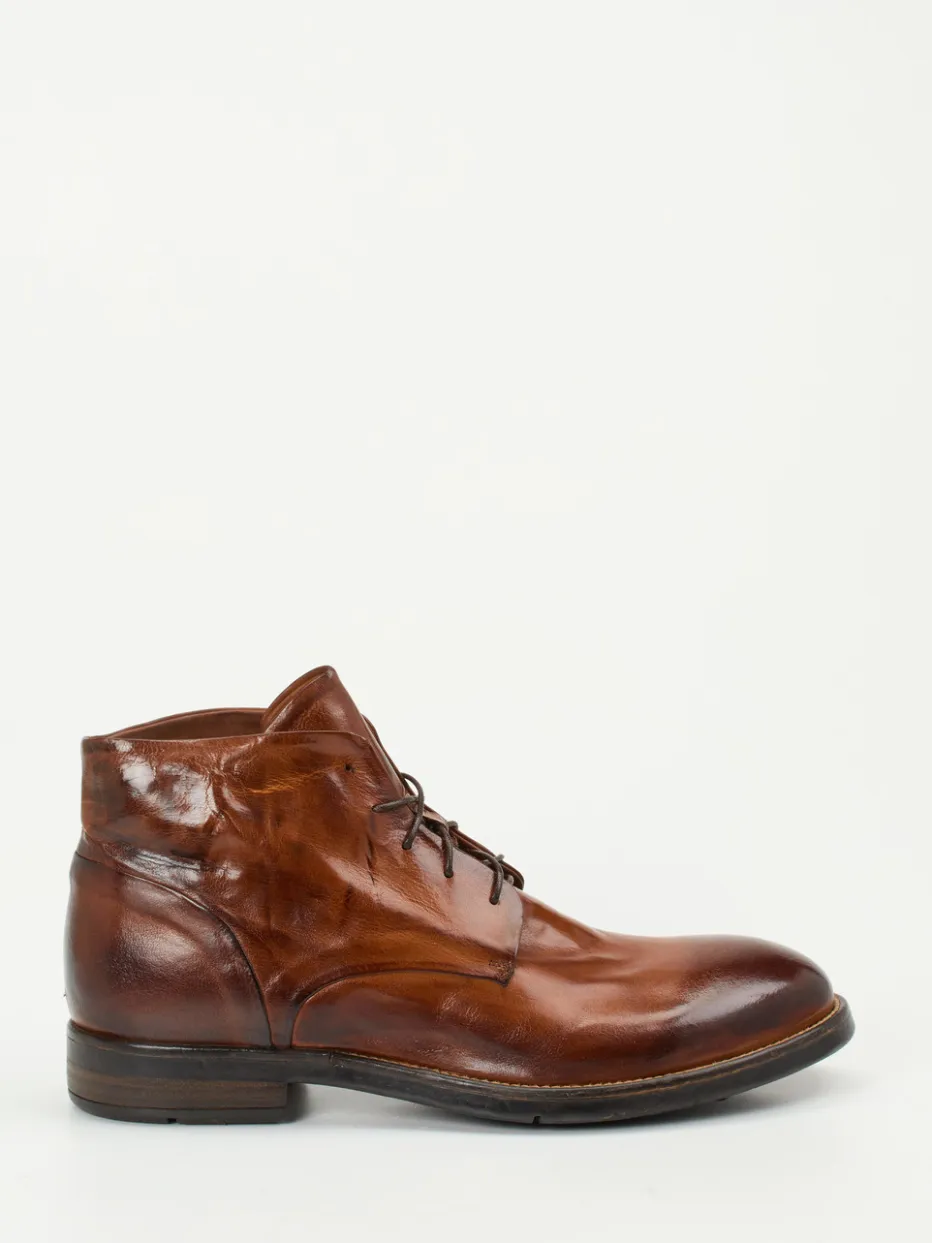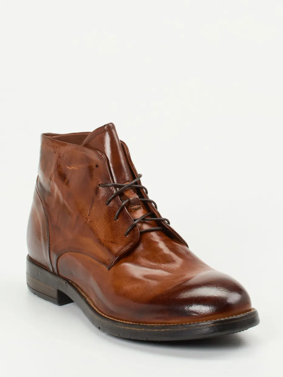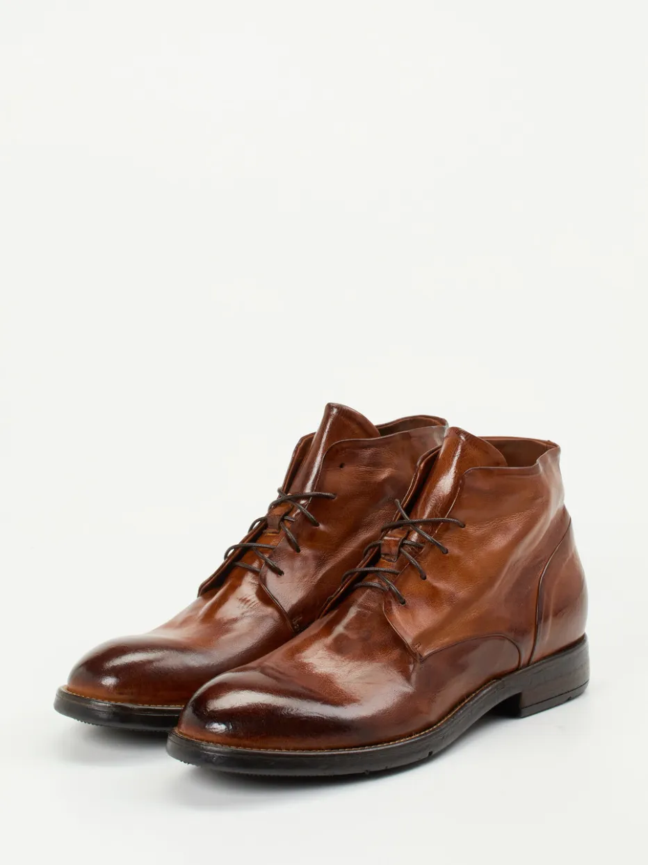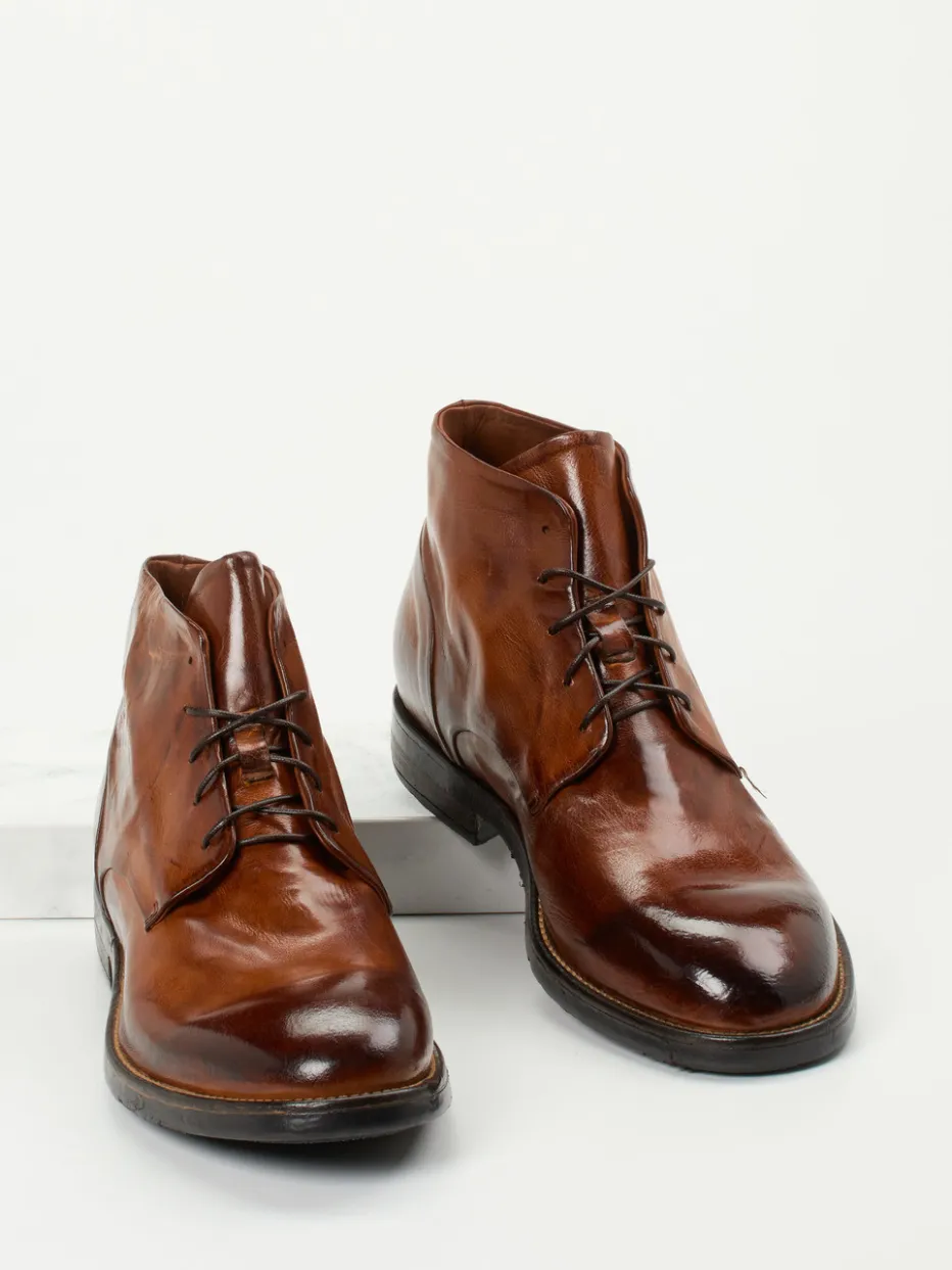 Stil trifft Substanz im Alltag.Lemargo präsentiert Schnürstiefeletten für Herren, die klassisches Design mit italienischer Handwerkskunst verbinden. Für urbane Wege zwischen Business und Casual bieten diese knöchelhohen Desert Boots aus braunem, glänzendem Lammleder mit individuell patiniertem Handfinish ein stilvolles Fundament. Die strukturierte Gummisohle mit griffigem Profil sorgt dabei für sicheren Tritt. Verstärkte Ferse, feine Nahtführung und asymmetrische Schaftform unterstreichen die hochwertige Verarbeitung. Die klassische Silhouette ist inspiriert vom Minimalismus der 90er und vielseitig kombinierbar mit Jeans wie auch Chino. Ein eleganter Allrounder mit authentischem Retro-Charakter – gefertigt mit italienischer Passion für Lederverarbeitung.