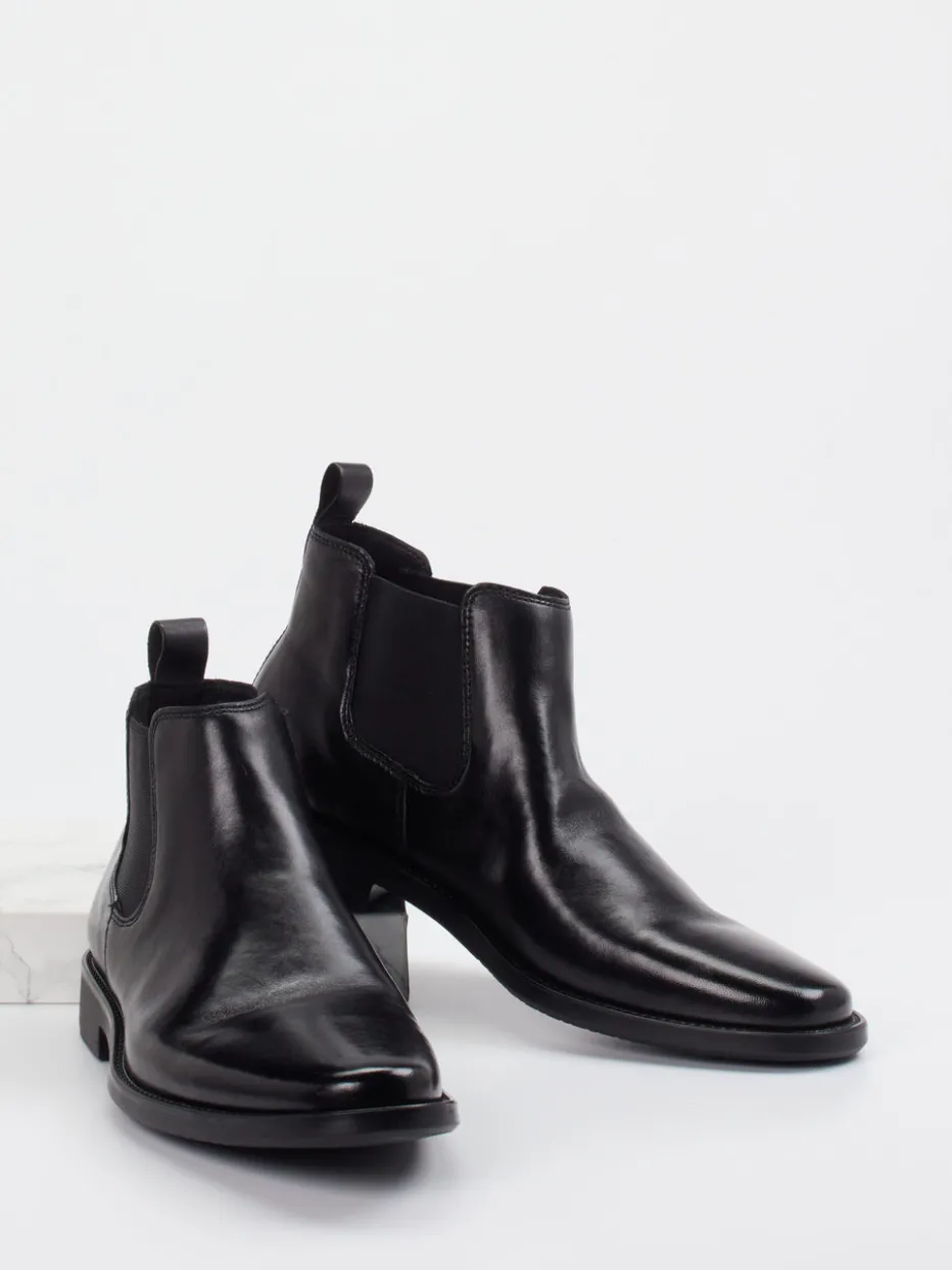 Diese Chelsea Boots aus hochwertigem Kalbleder verbinden klassische Eleganz mit dezenten modernen Akzenten wie der roten Linie an der Sohle – ideal für stilbewusste Alltags- und Businesslooks.