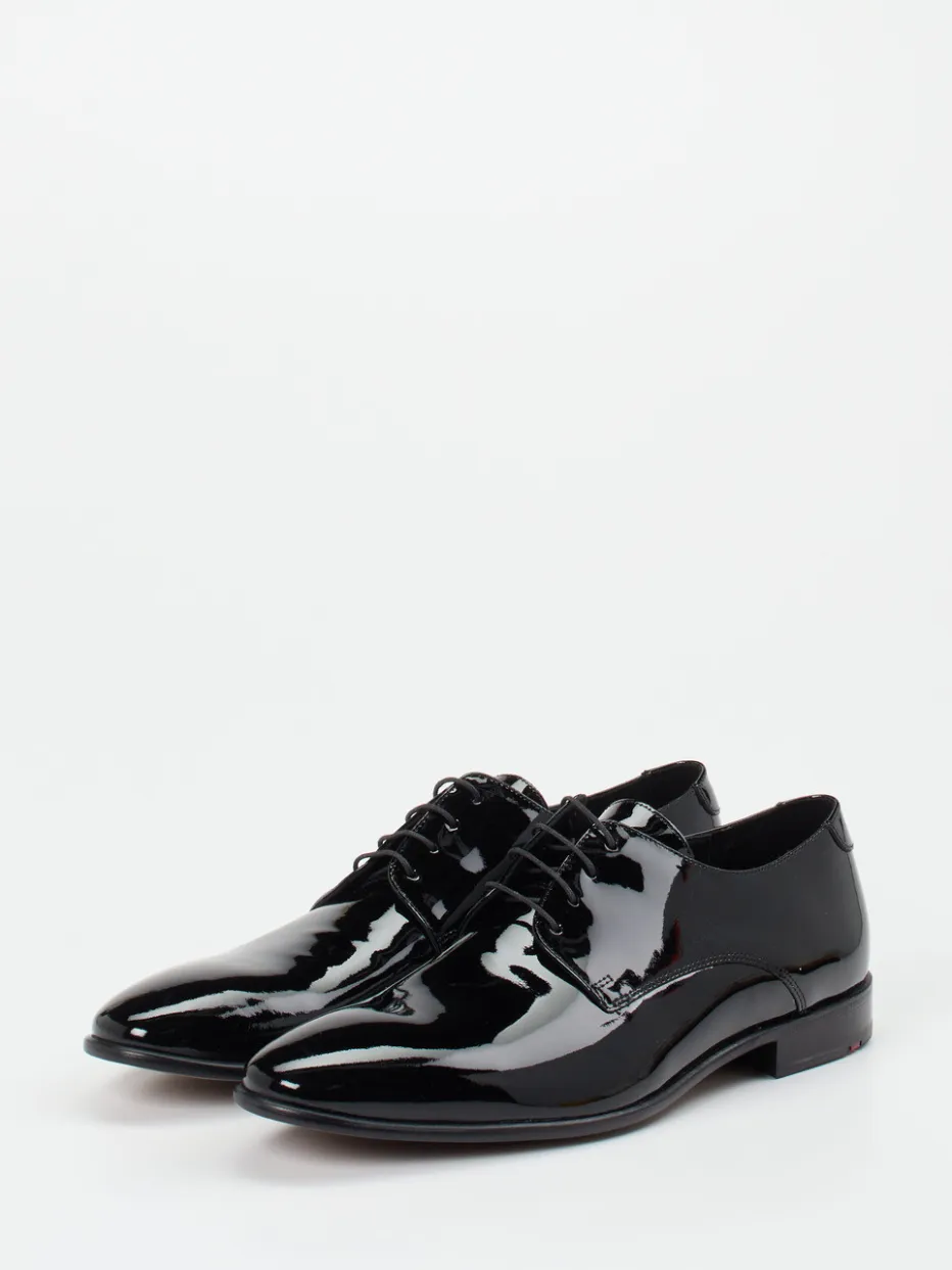 Lloyd bringt mit diesem Herrenschuh einen auffallend eleganten Derby auf das Parkett. Die Schnürschuhe überzeugen mit hochglänzendem Lackleder in tiefem Schwarz und zeigen klassische Zurückhaltung in moderner Silhouette.