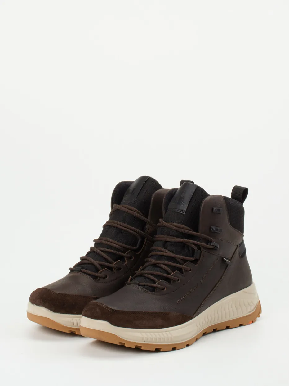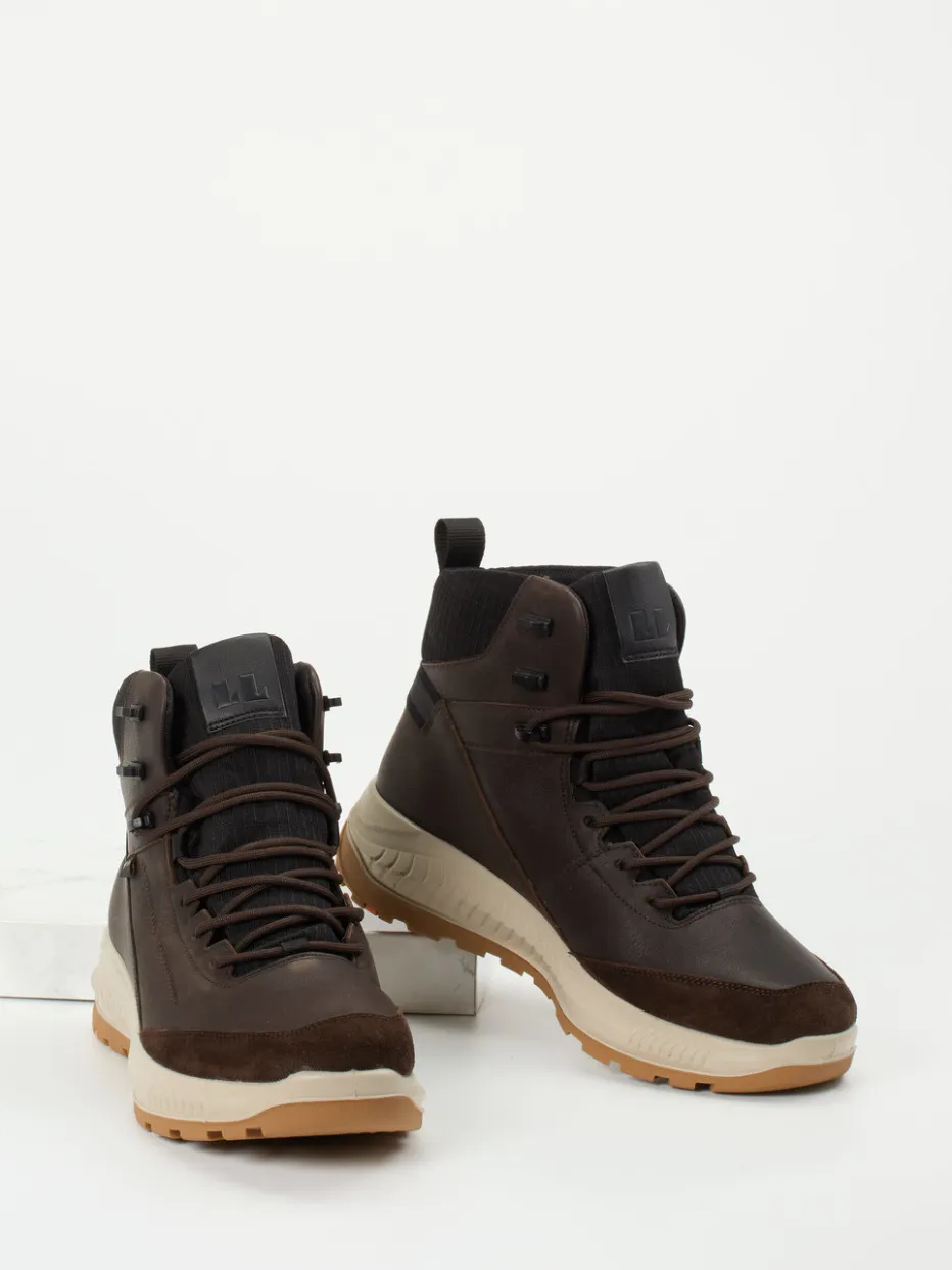 Robuste Begleitung für unbeständiges Wetter.Lloyd präsentiert mit diesen Outdoor-Boots einen funktionalen Herrenstiefel im Mid-Cut-Design. Ideal für herbstliche Spaziergänge oder den urbanen Alltag bei Nässe: Das Modell kombiniert dunkelbraunes Fettleder mit samtig angeschliffenem Veloursleder und bietet dank Gore-Tex-Ausstattung zuverlässigen Wetterschutz. Die griffige Gummiprofilsohle sorgt für sicheren Tritt, während die klassische Schnürung und das tonige Nahtbild den minimalistischen Look unterstreichen. Innen wärmt ein angenehmes Textilfutter mit Wollanteil. Die Zuglasche am Fersenbereich erleichtert den Einstieg. Passt besonders stimmig zu Funktionsjacken und Wollhosen. Lloyd vereint Funktionalität und präzises Design für anspruchsvolle Alltags- und Outdoor-Momente.