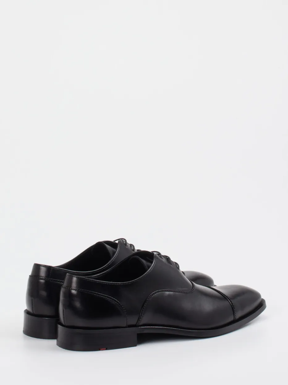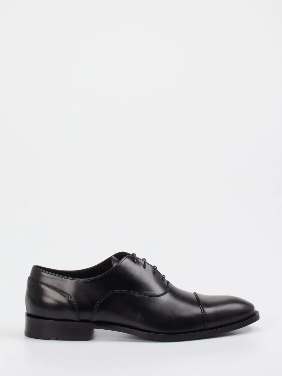 Klassik mit modernem Feinschliff.Der schwarze Oxford-Schnürschuh von Lloyd definiert klassische Business-Eleganz für Herren neu. Ob im Meeting oder bei einem festlichen Anlass – dieser Schuh überzeugt mit hochwertigem Kalbleder in sanft glänzender Optik und klarer Linienführung. Die schlanke Silhouette mit markanter Kappennaht, die dezente Ziernaht und eine rote Gummieinlage an der Ferse sorgen für raffinierte Akzente. Der Schnürverschluss garantiert eine präzise Passform; die rutschhemmende Gummieinlage in der Ledersohle sorgt für sicheren Tritt. Durch seine minimalistische Ästhetik spiegelt das Modell den „Quiet Luxury“-Trend wider. Perfekt in Kombination mit Anzughosen oder eleganten Chinos. Ein komfortabler Begleiter für einen souveränen Auftritt voller Stilbewusstsein.