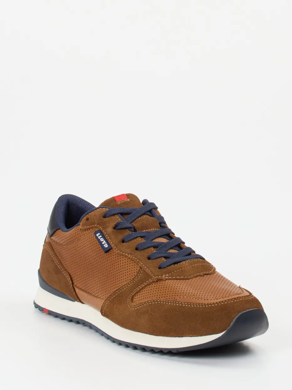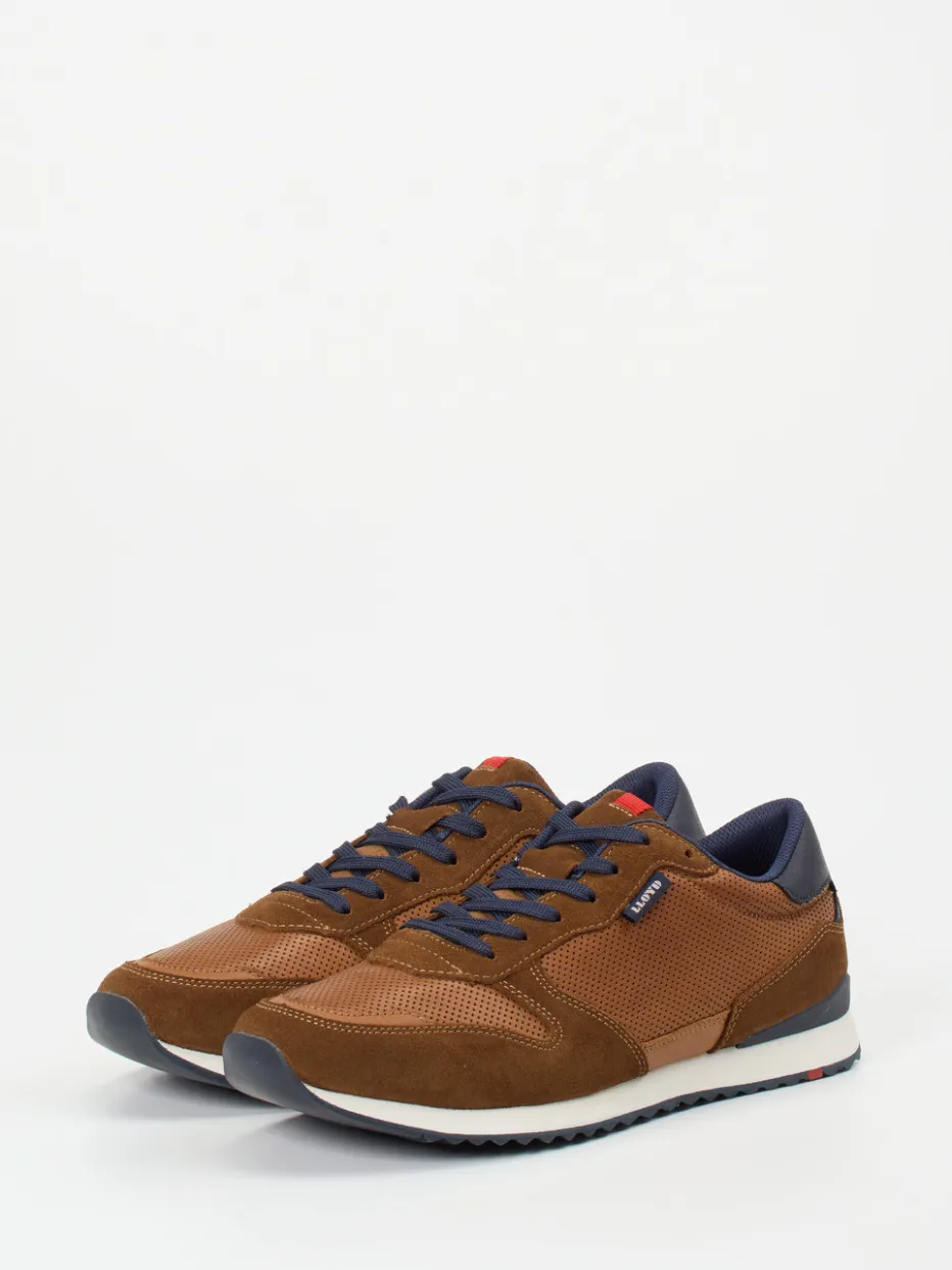 Sportlicher Klassiker mit Raffinesse.Lloyd präsentiert einen Retro-Sneaker für Herren mit unverwechselbarer Ästhetik. Ob beim Stadtbummel oder im Alltag – dieser Sneaker vereint komfortorientiertes Design mit vintage-inspirierter Dynamik. Gefertigt aus geprägtem Kalbs- und weichem Veloursleder mit perforierten Partien, überzeugt er mit atmungsaktiven Eigenschaften und einem angenehmen Tragegefühl. Die mittelbraune Farbgebung ist durch dunkelblaue Details und Kontrastnähte stilvoll ergänzt. Eine flache, zweifarbige Gummisohle mit rotem Akzent rundet den Look sportlich ab. Der gepolsterte Schaftrand, das herausnehmbare Fußbett und das Textilfutter bieten zusätzlichen Komfort. Zeitgemäßer Retro-Sneaker mit markentypischer Alltagstauglichkeit.