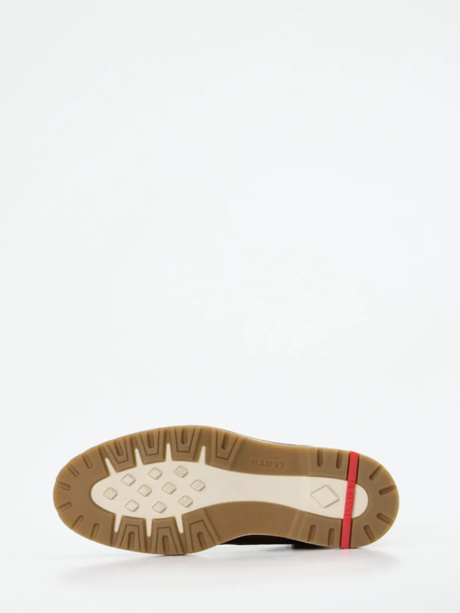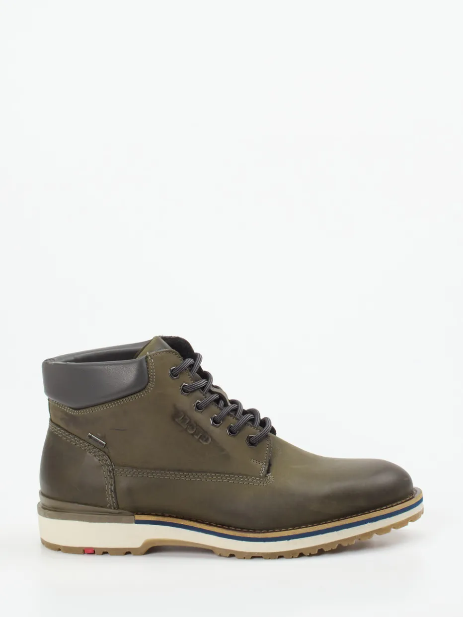 Wetterfeste Schnürboots mit Streetwear-Charakter.Die Marke Lloyd präsentiert mit diesen Herren-Schnürboots ein funktionales Modell für Herbst und Winter. Das olivgrüne Glattleder verleiht dem knöchelhohen Boot mit matter Oberfläche eine kernige Robustheit. Dank GoreTex-Membran ist das Obermaterial wind- und wasserdicht – ideal bei wechselhaften Bedingungen. Die profilierte Gummisohle mit blau-weißem Rahmen sorgt für sicheren Grip und zeitgemäßen Kontrast. Gepolsterter Schaft und warmes Textilfutter bieten Komfort, der auch längere Strecken meistert. Streetwear-Details wie der farbige Sohlenakzent und ein geprägtes Markenlogo runden den urbanen Outdoor-Look ab. Ein wetterfestes Allroundtalent mit funktionaler Ästhetik und markenspezifischem Komfortverständnis.