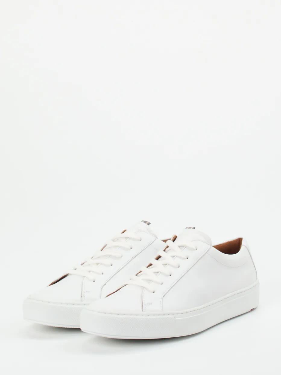 Minimalistischer Purismus in Weiß.Die Marke Lloyd präsentiert mit diesem Herren-Sneaker ein stilvoll reduziertes Modell für Alltag und Büro. Weiches Kalbleder in Weiß verleiht dem Schuh eine edle Haptik und sorgt für angenehmen Tragekomfort. Die glatte Oberfläche, Ton-in-Ton-Nähte sowie eine klassische, flache Silhouette unterstreichen das cleane Design. Eine rote Akzentlinie auf der Laufsohle und verstärkte Fersendetails setzen dezente Highlights im Streetwear-Stil. Die leder- und textilgefütterte Innenausstattung sowie das gepolsterte Wechselfußbett bieten zusätzlichen Komfort. Ideal für minimalistische Looks zu Jeans, Chinos oder Anzughosen. Lloyd steht für hochwertige Verarbeitung in zeitlosem Design.