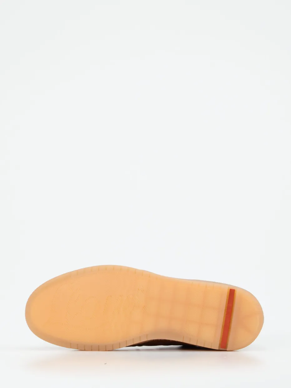 Der Herren-Sneaker von Lloyd kombiniert klassische Form mit dezentem Retro-Charme. Aus weichem Veloursleder gefertigt, zeigt sich das Modell in einem markanten Mittelbraun, ergänzt durch tonige Steppnähte und eine transparente, honigfarbene Gummisohle mit rutschhemmendem Profil.