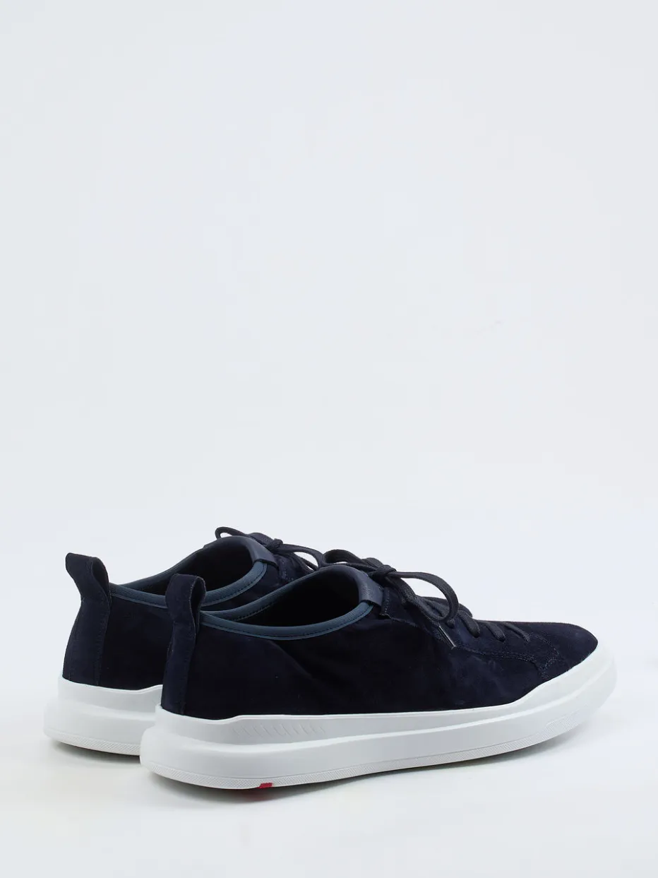 Ideal für Office-taugliche Freizeitlooks überzeugt das Modell durch samtig mattes Ziegenveloursleder in edlem Dunkelblau. Die klassisch flache Form wird von einer weißen Kontrastsohle mit rotem Laufsohlen-Detail akzentuiert. Durch das gepolsterte Fersenfutter aus Kalbleder und das herausnehmbare Variofußbett eignet sich der Schuh perfekt für individuelle Einlagen. Streetwear-Einflüsse und „Quiet Luxury“-Ästhetik bestimmen den modischen Charakter. Lässt sich mühelos mit Chinos oder Denim kombinieren.