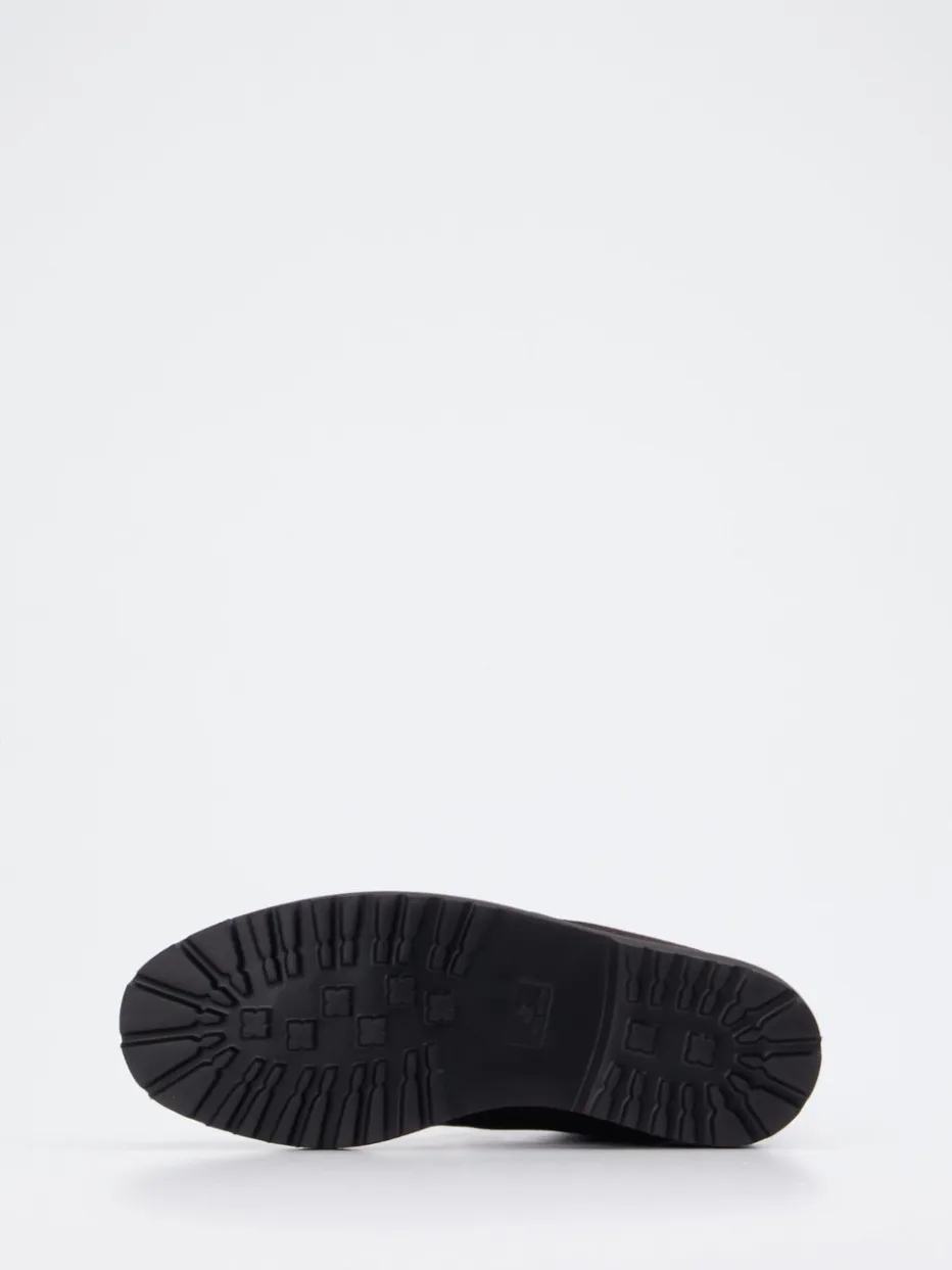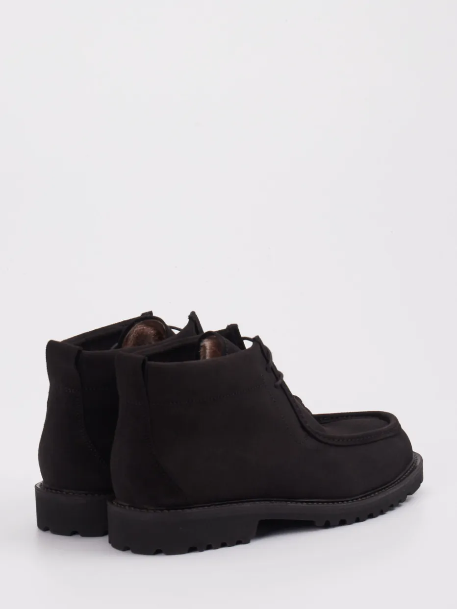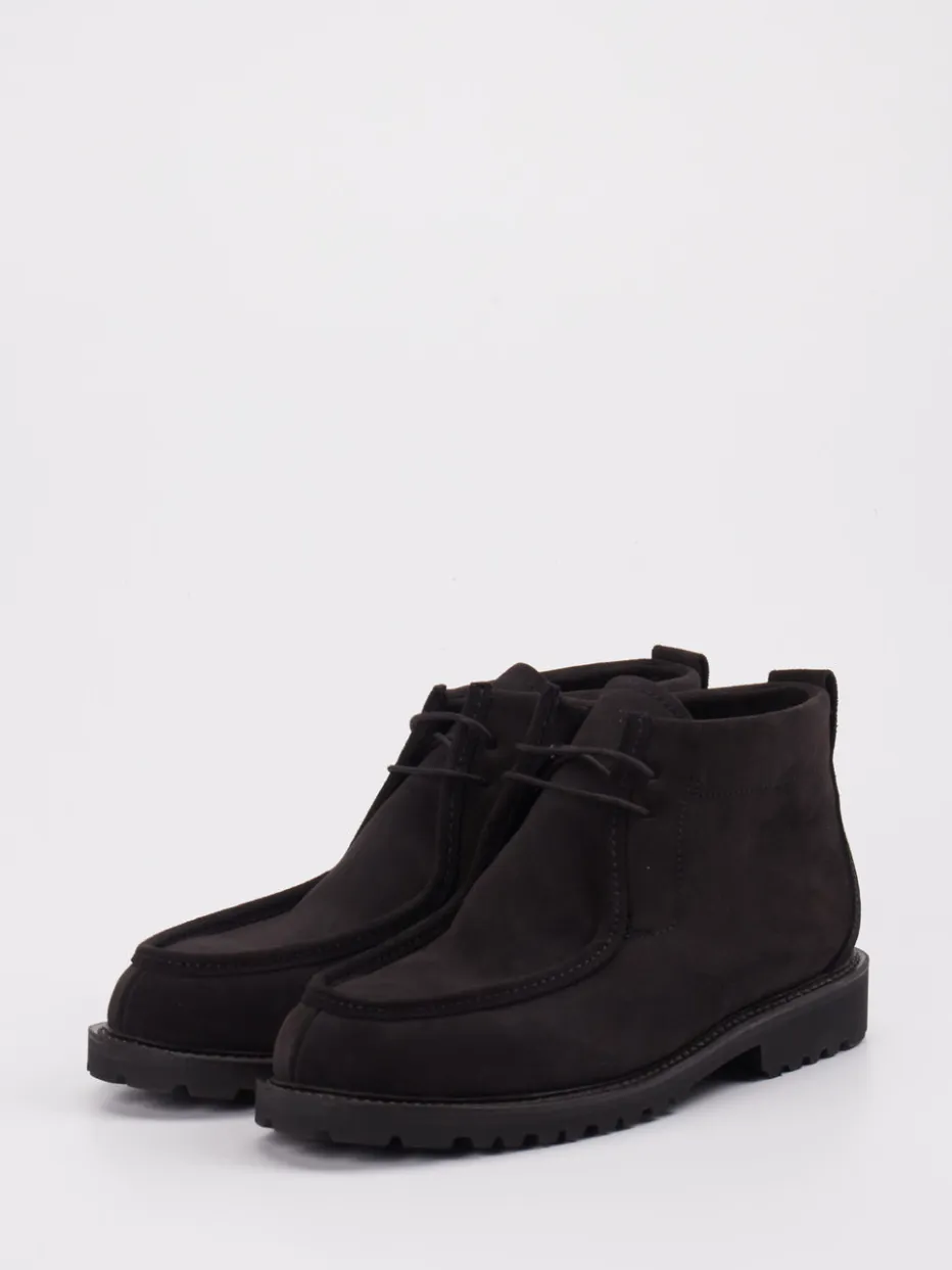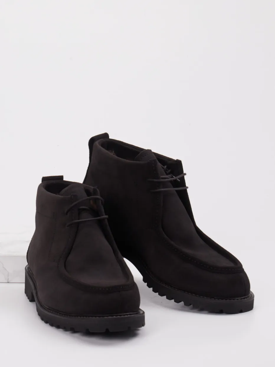 Diese klassisch designten Desert Boots vereinen hochwertige Verarbeitung mit griffiger Funktionalität für Herbst und Winter. Die schwarze Veloursleder-Optik wirkt dabei edel und zeitlos.