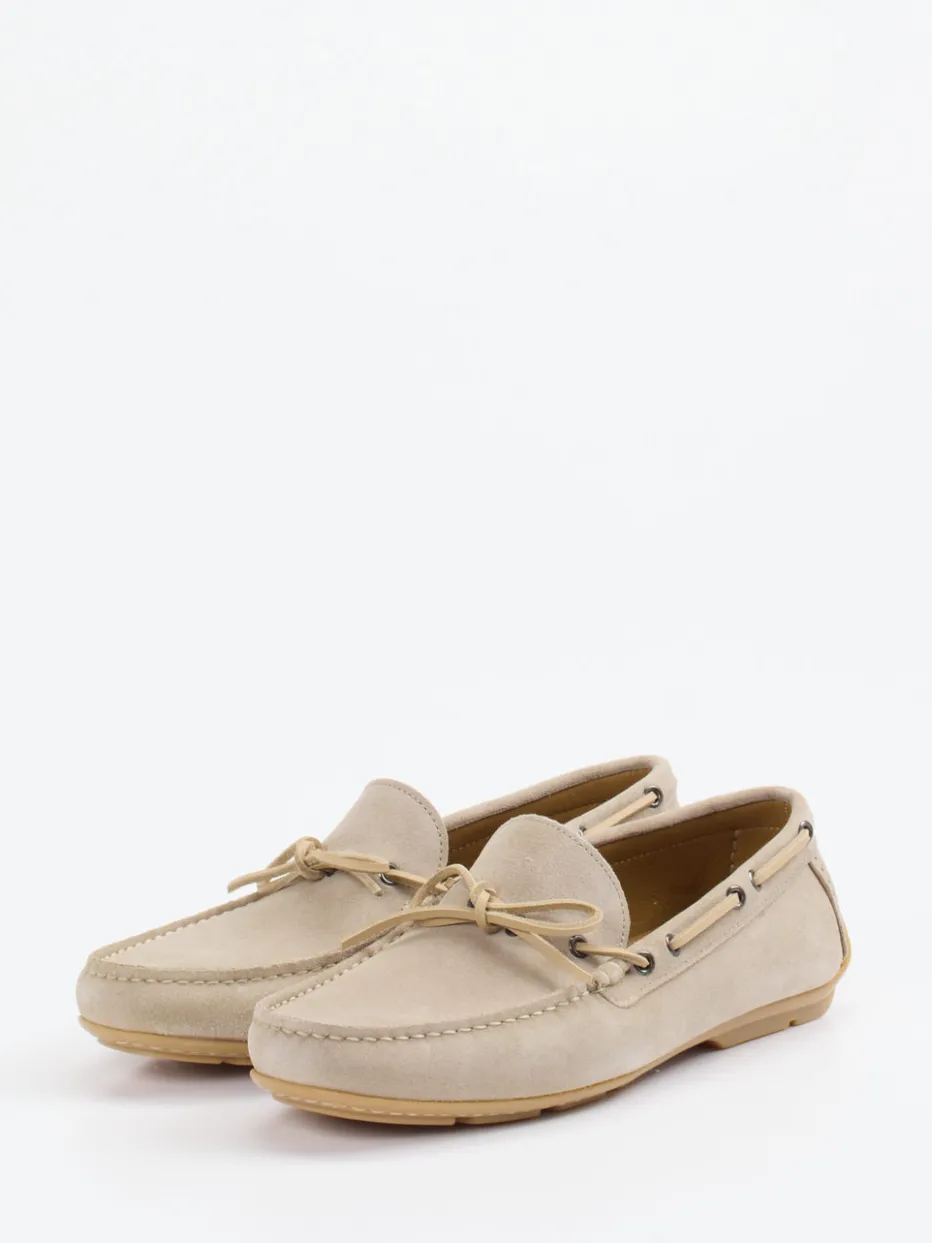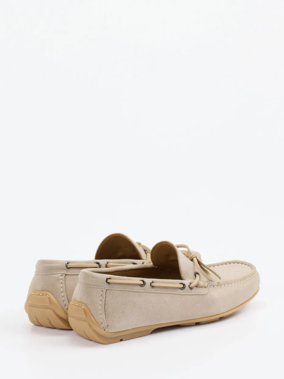 Klassischer Sommer-Mokassin in sandigem Veloursleder mit preppy Design und hochwertiger Gummisohle – stilvoller Komfort für entspannte Stunden.