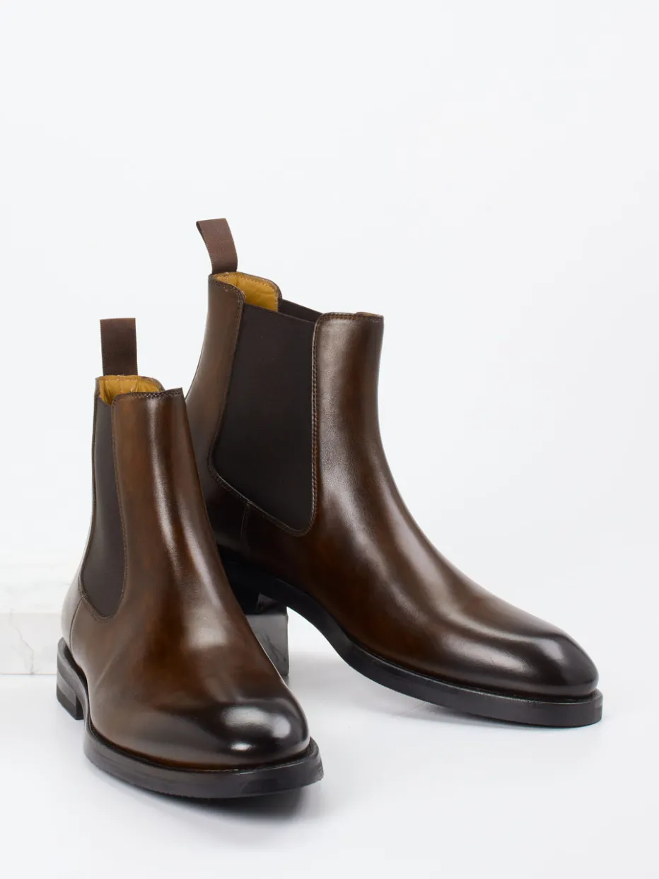 Glänzendes Kalbleder, dezente Ton-in-Ton Elastikeinsätze und eine klassische Silhouette machen diesen Chelsea Boot zu einem stilvollen Begleiter für Alltag und Business.