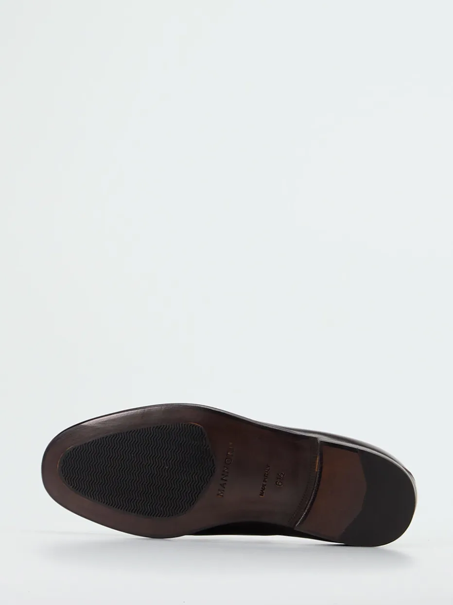 Dieser Herren-Loafer von Mannori kombiniert fein glänzendes Ziegenleder mit klassischer Silhouette und dezenten Details – handgefertigt in Italien, ein authentisches Stil-Statement für den Alltag.