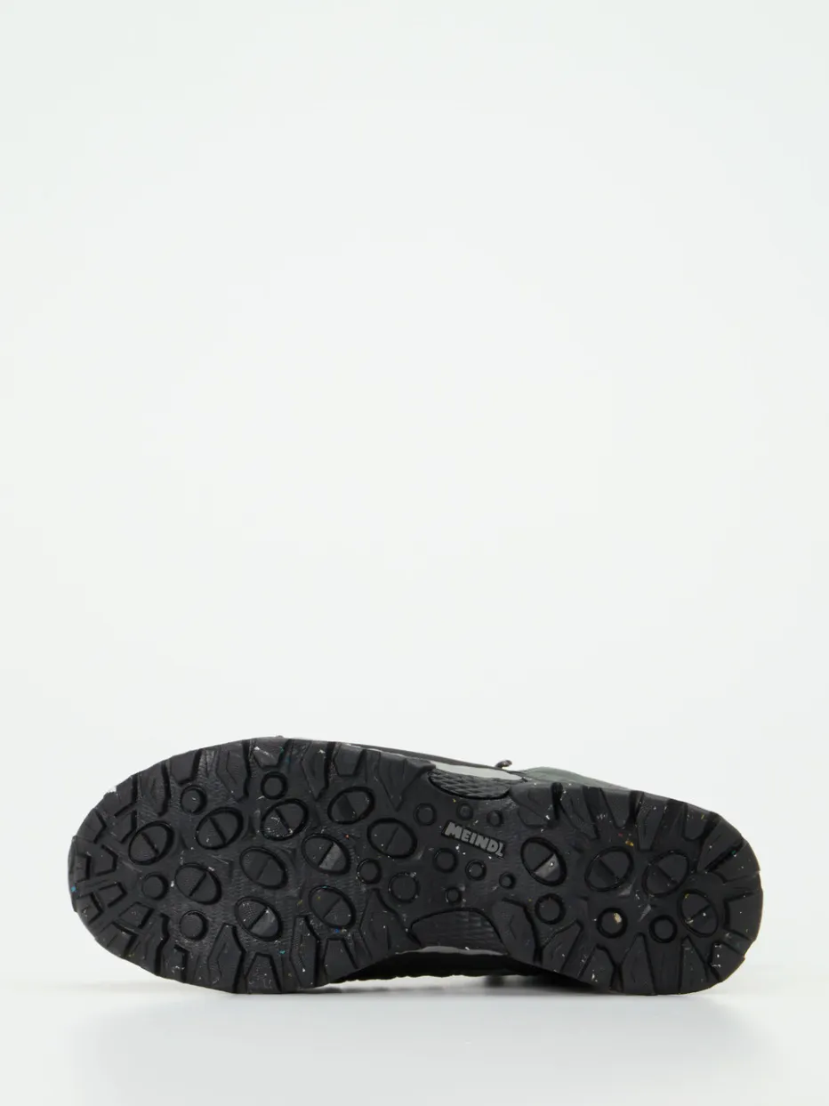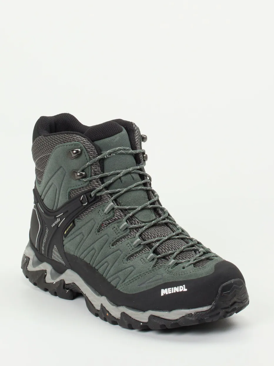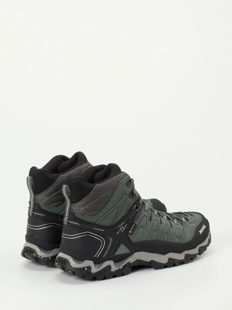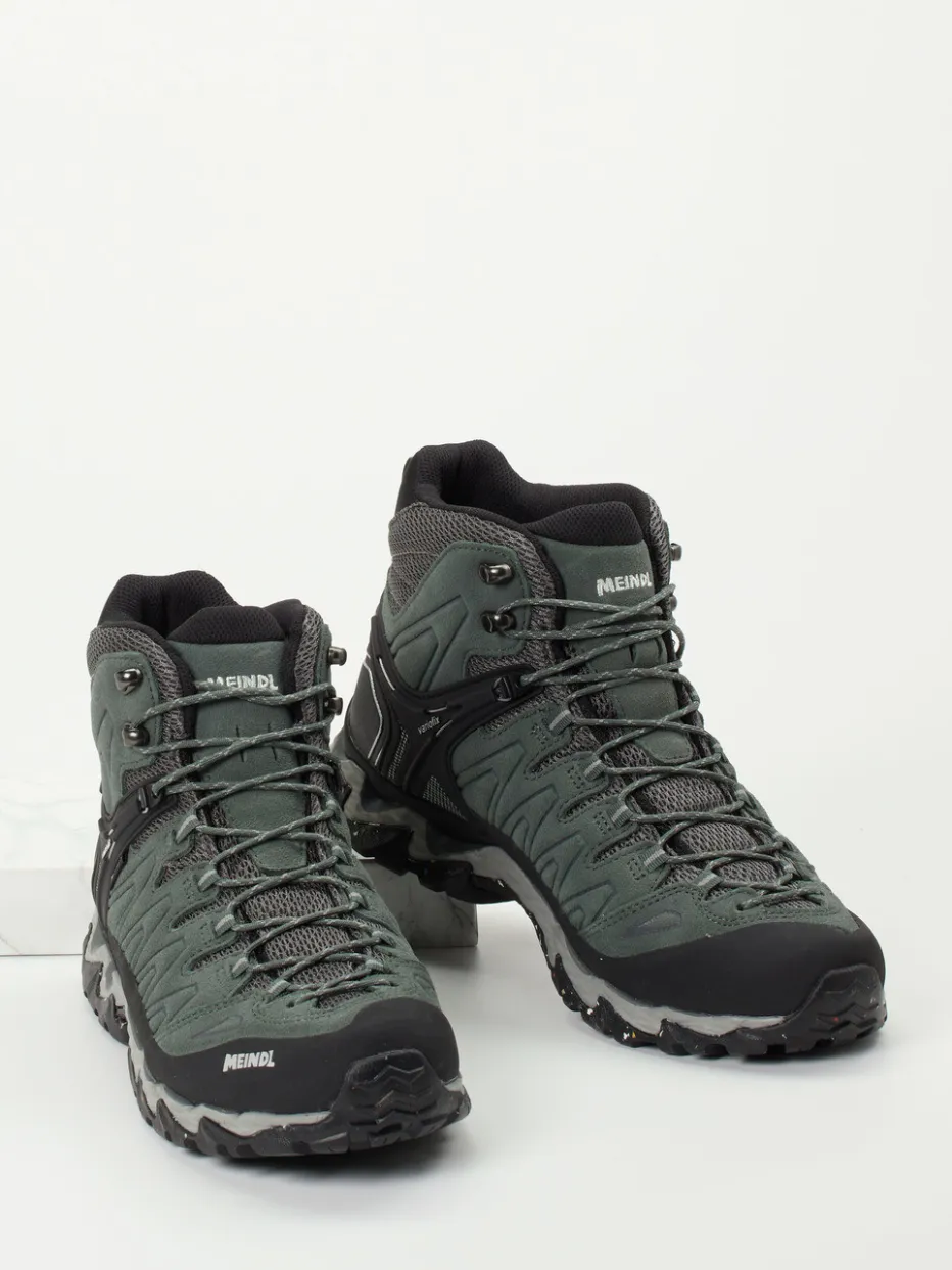 Bereit für jedes Outdoor-Abenteuer.Meindl präsentiert mit diesen Wanderschuhen einen funktionalen Mid-Cut-Stiefel für Herren. Ideal für wechselhaftes Gelände: Der Mix aus grüngrauem Veloursleder und grauem Mesh ist nicht nur strapazierfähig, sondern sorgt dank GORE-TEX®-Membran auch für atmungsaktiven Nässeschutz. Das knöchelhohe Design mit Hakenösen-Schnürung, gepolstertem Schaftrand und verstärkter Zehenkappe bietet sicheren Halt und Komfort. Tannengrüne, matt gehaltene Oberflächen, Ton-in-Ton-Nähte und reflektierende Elemente unterstreichen das technische Design. Die griffige Vibram®-Sohle überzeugt auf nassem wie trockenem Untergrund. Ideal kombiniert mit Funktionssocken und Outdoor-Rucksack. Meindl steht für langlebige Performance bei maximalem Tragekomfort.