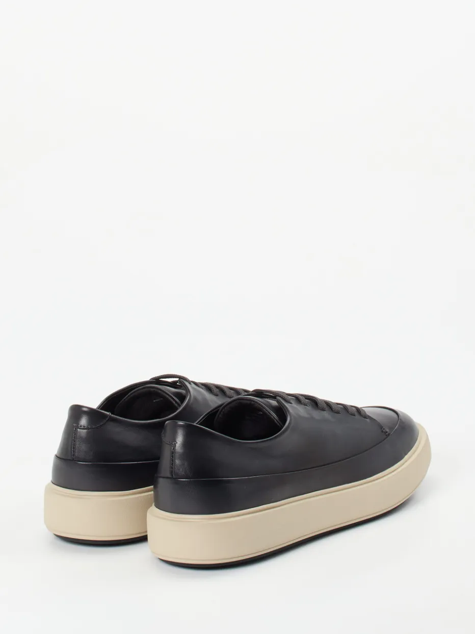 Dieser Low-Top-Sneaker verbindet luxuriöses Lammleder mit minimalistischer Formsprache und monochromem Kontrast. Ideal für stilbewusste Looks zwischen Streetstyle und Business-Casual.