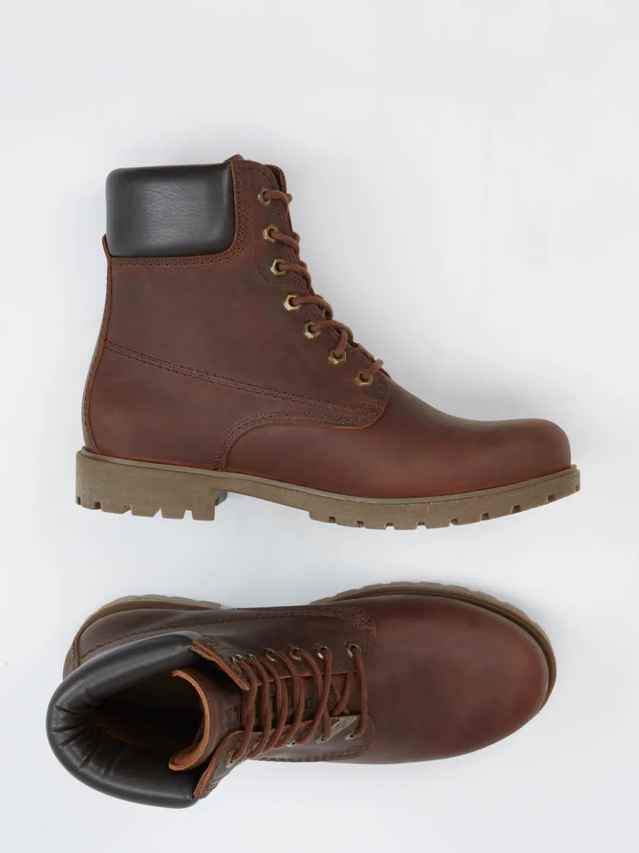Hochwertig gerüstet für Outdoor-Momente.Panama Jack präsentiert klassische Schnürboots für Herren mit robuster Ausstrahlung. Ob bei einem Spaziergang durch herbstliche Wälder oder im alltäglichen Einsatz – dieser Boot erfüllt funktionale Ansprüche mit Stil. Mittelbraunes, wasserabweisendes Fettleder mit matter Oberfläche sorgt für langlebige Qualität und natürlichen Look. Ein gepolsterter Schaft erhöht den Tragekomfort, während die stark profilierte Gummisohle Trittsicherheit bietet. Messingfarbene Ösen und das geprägte Logo unterstreichen die authentische Heritage-Ästhetik. Ideal kombinierbar mit Jeans, Flanellhemd oder Outdoorjacke. Ein markentreuer Winterboot mit handwerklicher Substanz und modernem Workwear-Charakter.