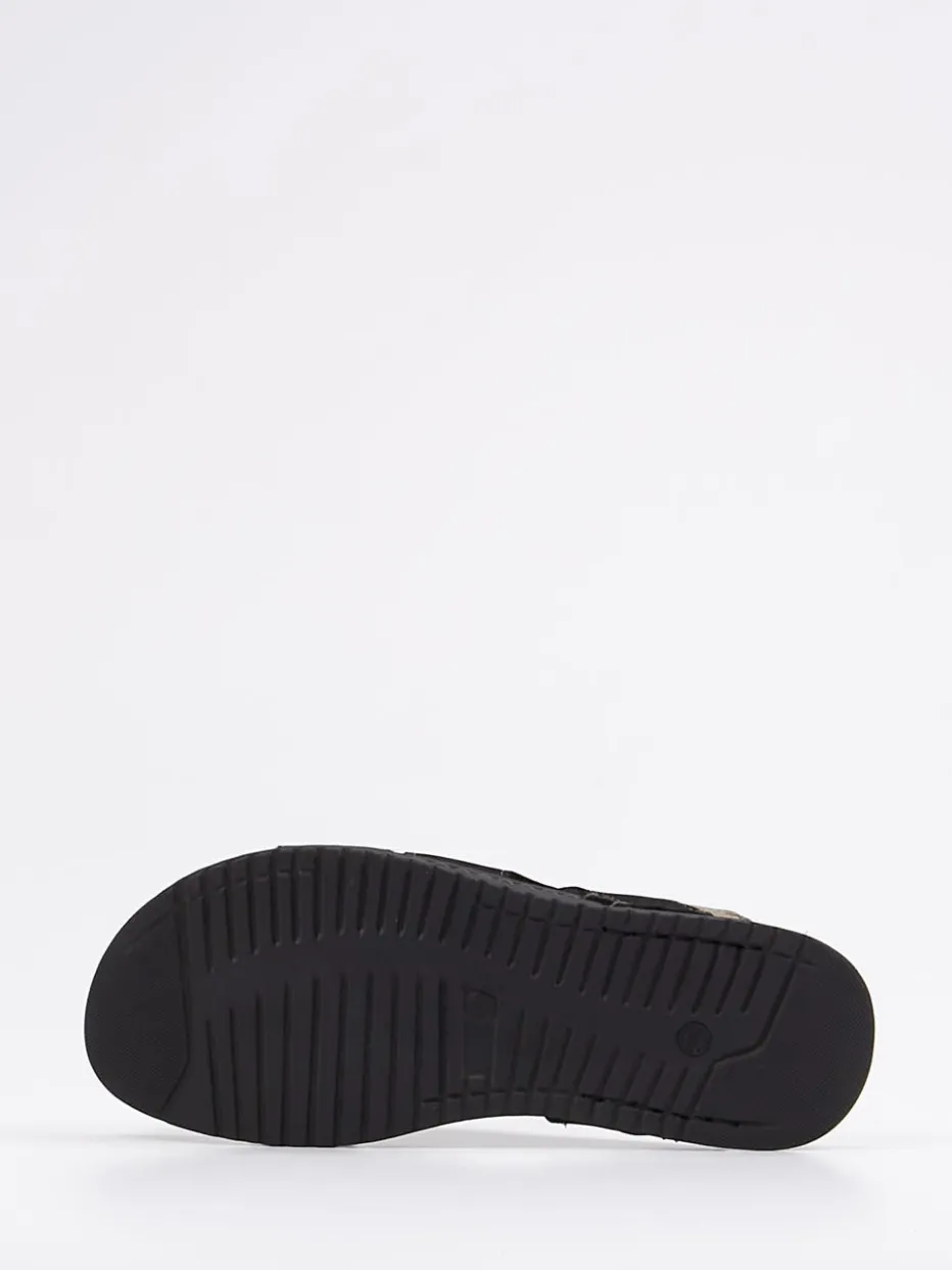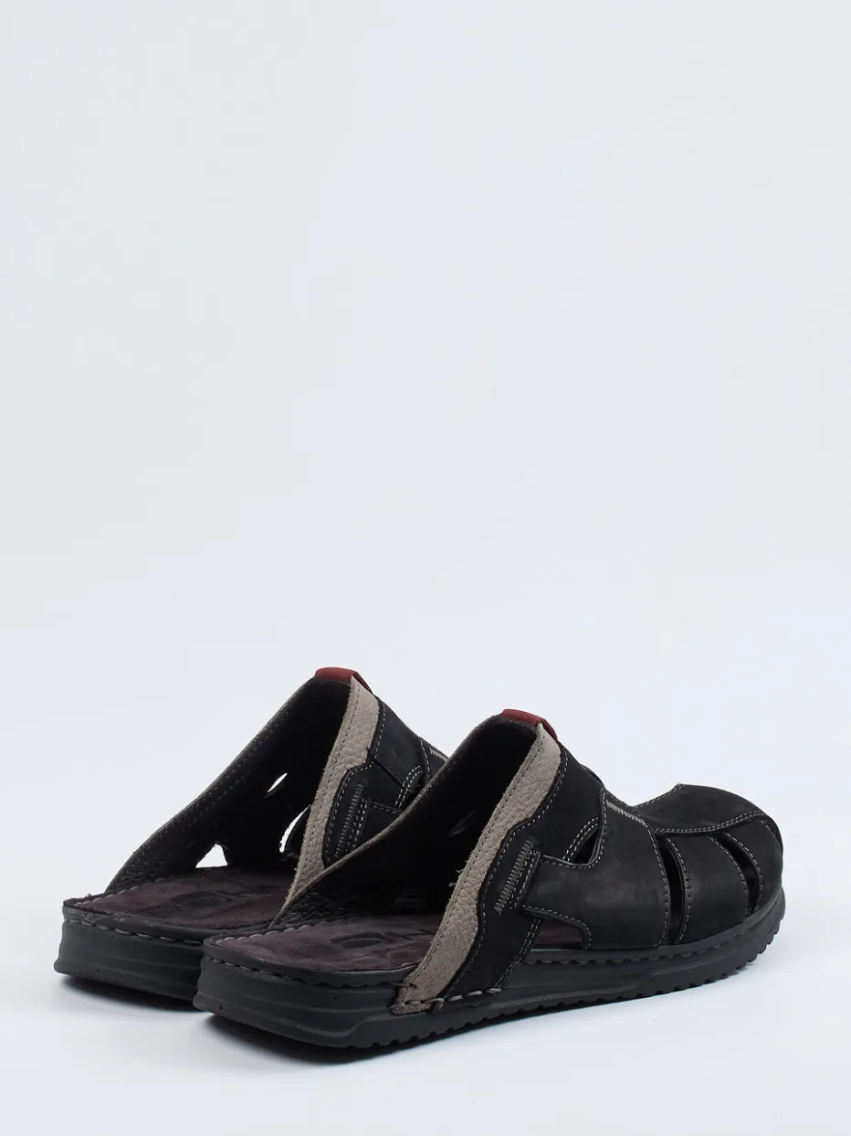 Sommerkomfort für Zuhause und Freizeit.Rohde präsentiert eine komfortorientierte Herren-Pantolette in geschlossener Schlupfform. Perfekt für warme Tage: Das schwarze Nubukleder ist samtig angeschliffen und schmiegt sich weich an den Fuß. Dezente Cut-Outs an der Seite verbessern die Luftzirkulation, während die gepolsterte, lederbezogene Innensohle für hohen Komfort sorgt. Optisch akzentuiert durch beige Kontrastnähte und eine dunkelrote Zuglasche, ergänzt die griffige Gummisohle den funktionalen Look. Die offene Ferse unterstreicht das angenehm unkomplizierte Tragegefühl. Ein stilvoll-entspanntes Modell für komfortbewusste Casual-Looks im Sommer.