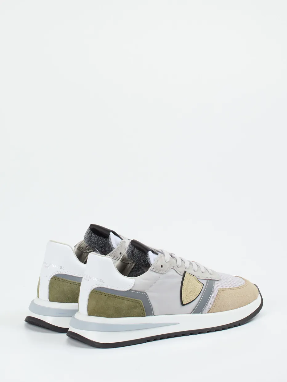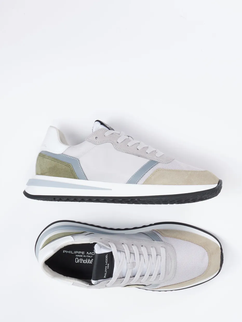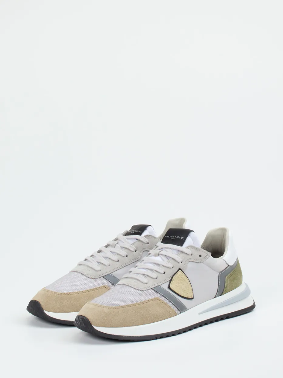 Urbaner Komfort im Retro-Stil.Philippe Model präsentiert einen Sneaker, der klassisches Design neu interpretiert. Ideal für entspannte Tage in der Stadt oder auf Reisen überzeugt das Modell durch hochwertiges Veloursleder, ergänzt um Mesh und glattes Leder. Farblich dominieren ruhige Grau-, Beige- und Olivtöne mit Ton-in-Ton-Nähten und reflektierenden Details. Die klassische Runner-Silhouette und die zweifarbige Zwischensohle sorgen für Dynamik, während die Ortholite-Innensohle maximalen Tragekomfort bietet – auch bei herausnehmbarer Sohle. Stilistisch trifft Streetwear auf dezente Eleganz und passt zu casual-lässigen Outfits. Ein Sneaker mit ikonischem Look und technischer Raffinesse von Philippe Model.