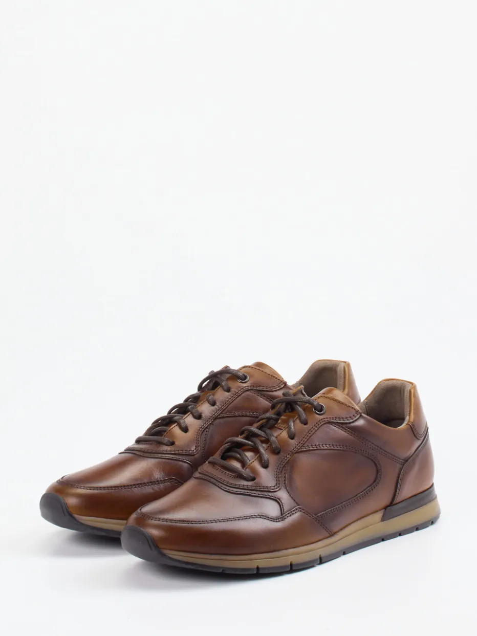 Klassischer Komfort neu gedacht.Pius Gabor präsentiert einen Herrensneaker mit sportiv-klassischem Charakter. Perfekt für urbane Pendler oder den legeren Business-Look kombiniert dieser Sneaker weiches, mittelbraunes Kalbleder mit einer glänzenden Oberfläche und tonigen Overlays. Die strukturierten Nähte, eine leicht transparente Zwischensohle und das rutschhemmende Gummiprofil setzen dezente Akzente. Innen sorgen Mikrofaserfutter und ein gepolstertes Fußbett für unvergleichlichen Komfort. Seine abgerundete Silhouette und die klassische Schnürung unterstreichen den Retro-inspirierten Stil – ideal zu Chino oder Wollhose. Pius Gabor steht für kompromisslose Qualität im Zeichen moderner Alltagstauglichkeit.