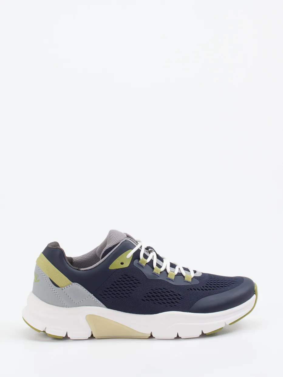 Kraftvoll durch den Tag.Der Herren-Sneaker von Pius Gabor verbindet sportliches Design mit durchdachter Technik. Ideal für Alltag und Sport überzeugt er mit atmungsaktivem Mesh und synthetisch verstärktem Textil, das sich matt präsentiert. Die dunkelblaue Farbgebung wird durch hellgraue und khakigrüne Akzente aufgelockert, während die sportlich-dynamische Low-Top-Form sowie zweifarbige Schnürung und verstärkte Ferse Funktion und Stil vereinen. Die Rollingsoft-Gummisohle sorgt für ergonomische Abrollbewegung und unterstützt jede Dynamik – sei es bei Stadtbummel oder im Studio. Perfekt zu Funktionssocken und athleisure-tauglicher Sporthose. Dezente Technik und modernes Design – markentypisch komfortabel umgesetzt.