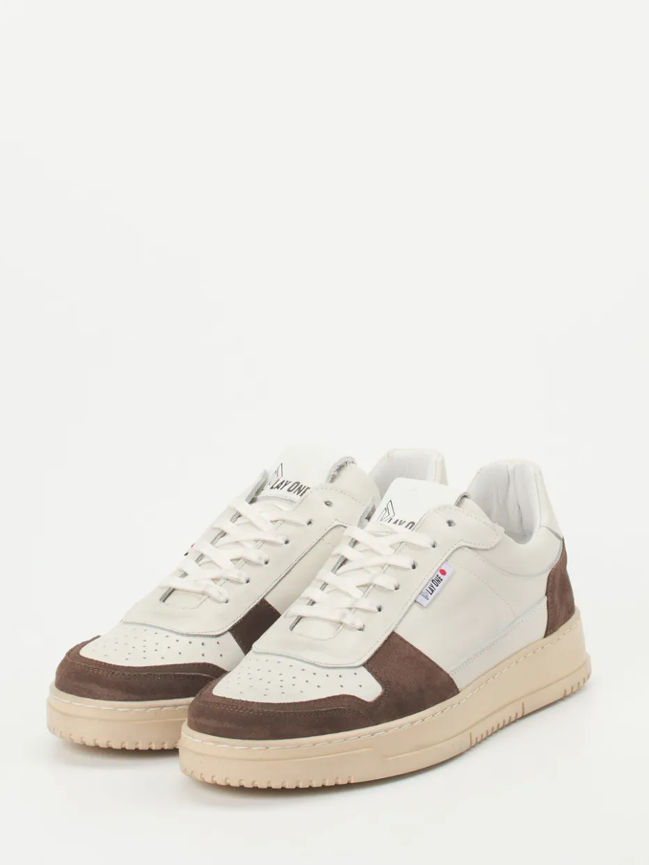 Retro-Akzente stilvoll interpretiert.Play One präsentiert mit diesem Low-Top-Sneaker ein Modell für Herren, das sportliche Silhouetten und hochwertige Materialien vereint. Für urbane Freizeitlooks ideal, überzeugt das Modell mit einem Materialmix aus glattem Kalbleder und samtigem Veloursleder. Die Kombination aus Offwhite und Brauntönen unterstreicht die zeitlose Struktur, während perforierte Details an der Zehenpartie sowie eine robuste, beigefarbene Cupsohle Funktionalität mit Stil verbinden. Logos auf Zunge, Ferse und Außenseite setzen dezente Markenakzente. Das Leder-/Textilfutter und ein gepolstertes Fußbett garantieren angenehmen Tragekomfort. Designstark und vielseitig – ein Everyday-Sneaker mit italienischem Anspruch.