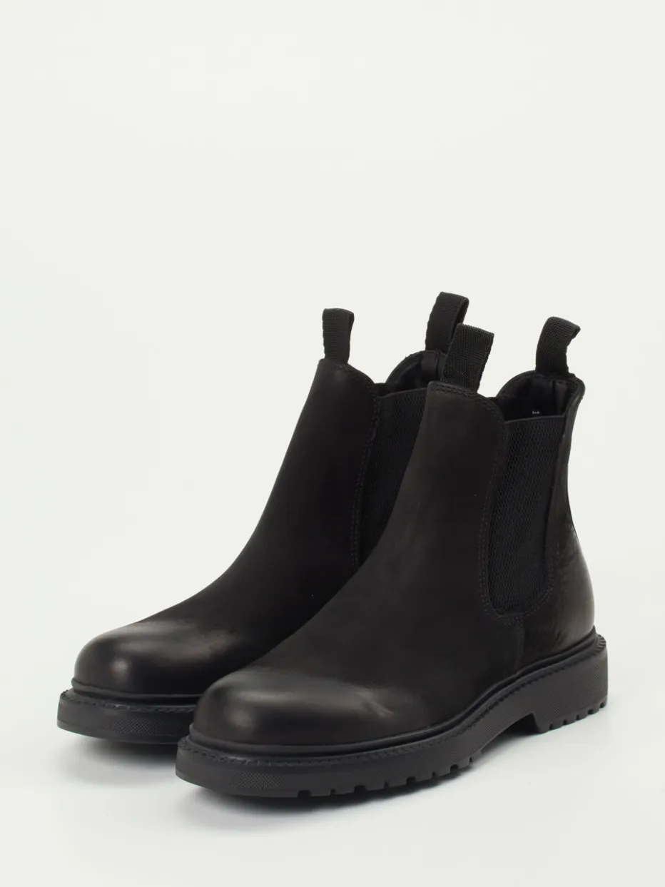 Minimalistische Chelsea Boots in samtigem Nubukleder mit robuster Profilsohle – stilvoller Komfort für urbane Looks von Business bis Freizeit.