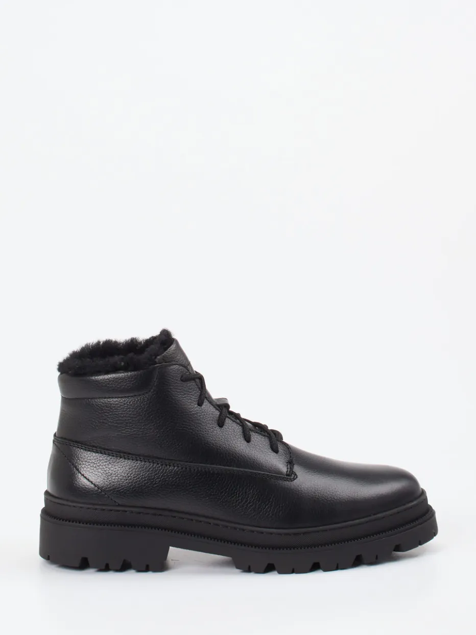 Gewappnet für urbane Wintertage.Ralph Harrison Country präsentiert klassische Herren-Schnürboots für die kalte Jahreszeit. Ob frostige Morgen oder verschneite Nachmittage – das fein genarbte Fettleder mit matter Oberfläche schützt zuverlässig vor Nässe. Durch das warme Innenfutter aus echtem Lammfell bleibt die Temperatur konstant angenehm. Das knöchelhohe Design in tiefem Schwarz mit Ton-in-Ton-Nähten folgt einem minimalistischen Anspruch, während die profilierte Gummisohle sicheren Tritt auf rutschigem Untergrund gewährleistet. Dank Utility-Einflüssen und klarer Formsprache lässt sich das Modell vielseitig zu Winterjacken und Wollhosen kombinieren. Stilvoller Wetterschutz mit funktionalem Komfort und Qualitätsanspruch.