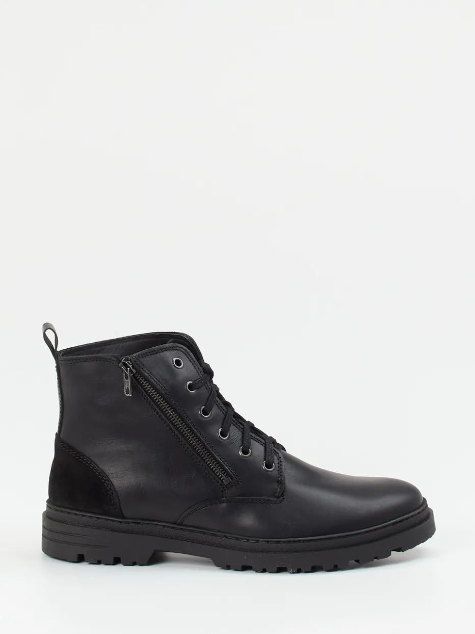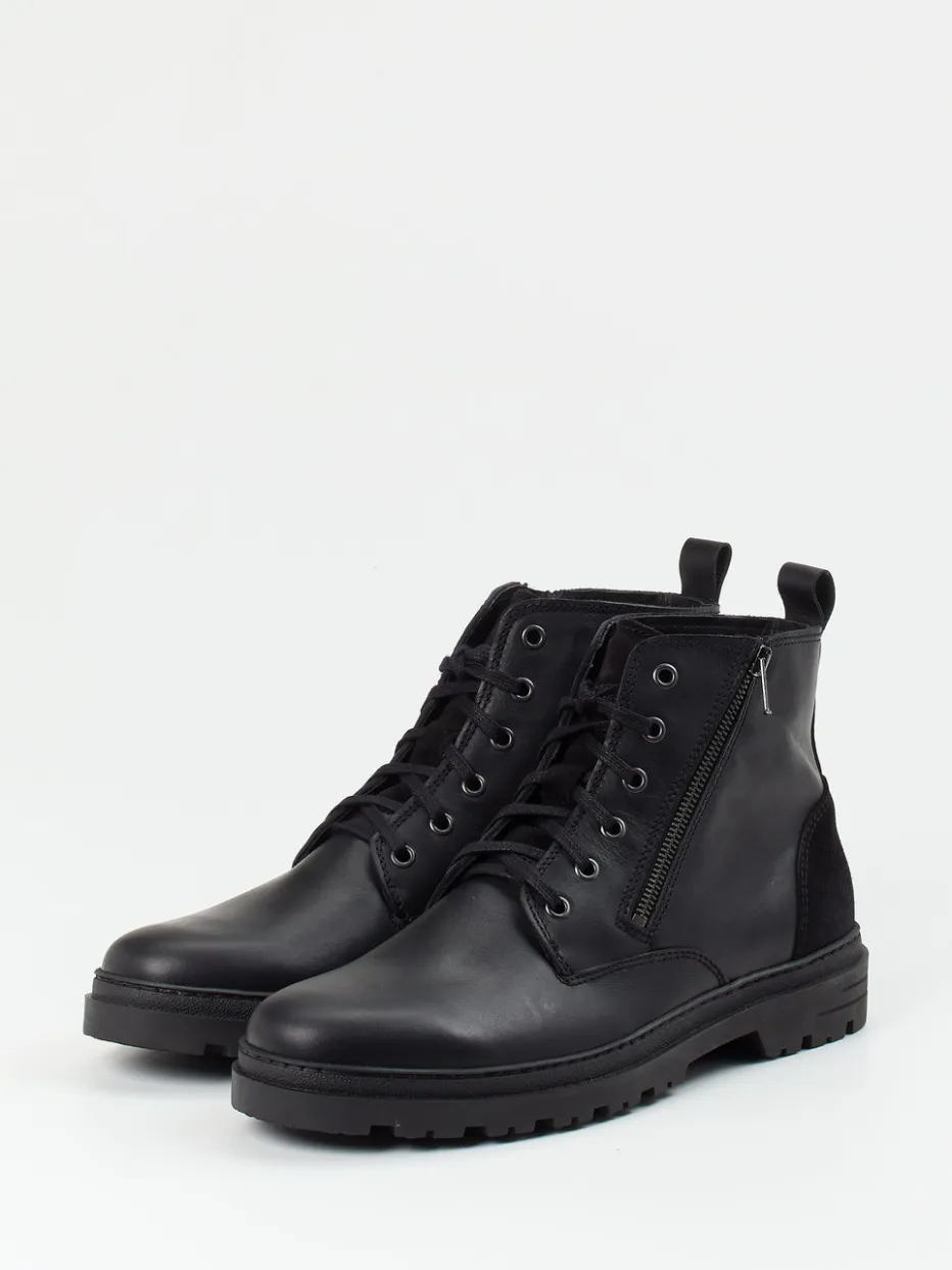 Urbaner Komfort für raue Tage.Ralph Harrison Country präsentiert robuste Damen-Schnürboots für Freizeit und Outdoor. Ideal für wechselhaftes Wetter bieten diese knöchelhohen Boots Halt und Komfort im urbanen Alltag. Gefertigt aus schwarzem Fettleder mit samtig-matter Velourslederpartie wirken sie dezent und zugleich funktional. Ein silberfarbener Reißverschluss an der Seite erleichtert den Einstieg, während die tief profilierte Gummisohle für Rutschfestigkeit sorgt. Ton-in-Ton-Nähte betonen den minimalistischen Look, der sich an aktuellen Utility- und Quiet-Trendästhetiken orientiert. Gut kombinierbar mit Thermo-Leggings oder Parka. Alltagstaugliches Design mit markentypischer Materialqualität.