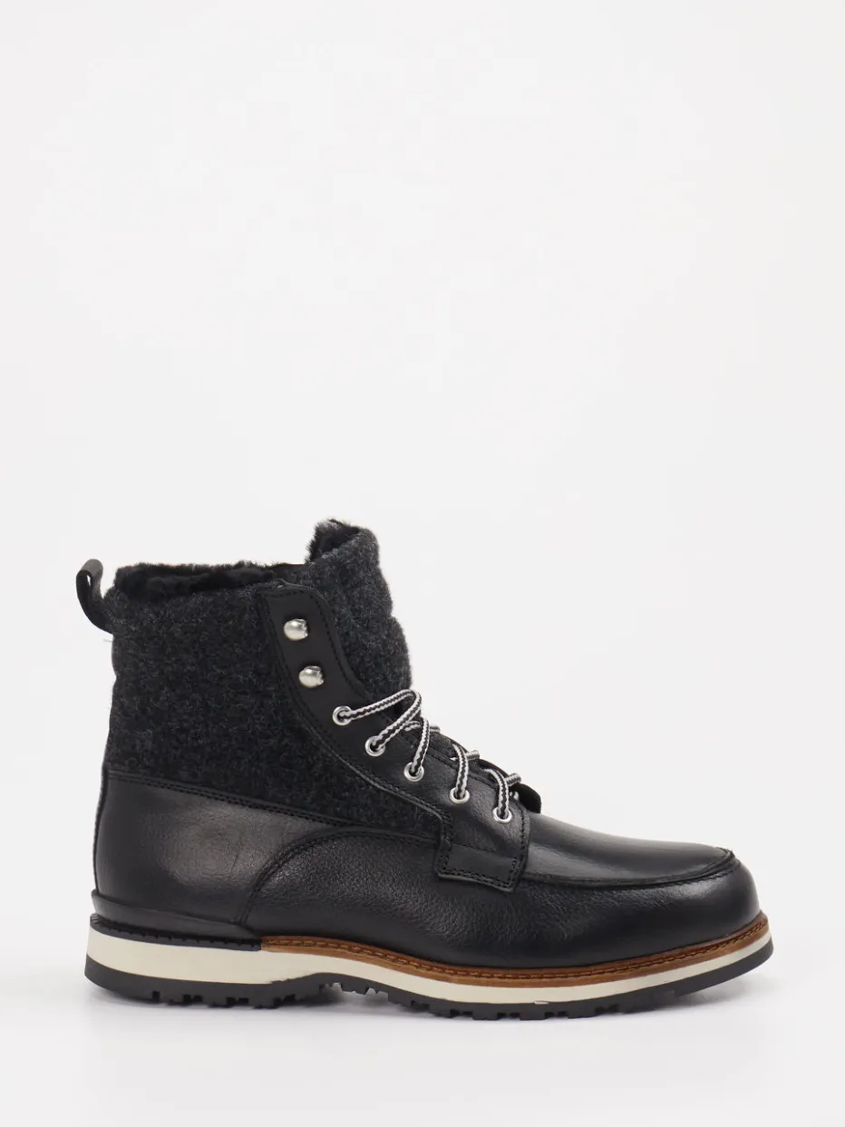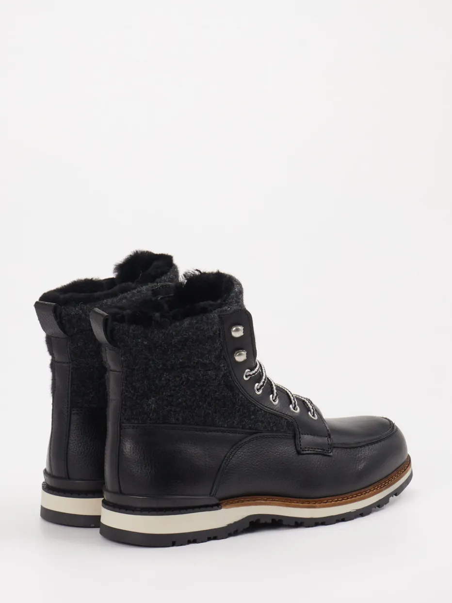 Der Materialmix aus robustem Leder und wärmendem Filz macht diesen Winterboot zu einem funktionalen Begleiter mit Outdoor-Charakter. Raffinierte Details unterstreichen den maskulinen Look.