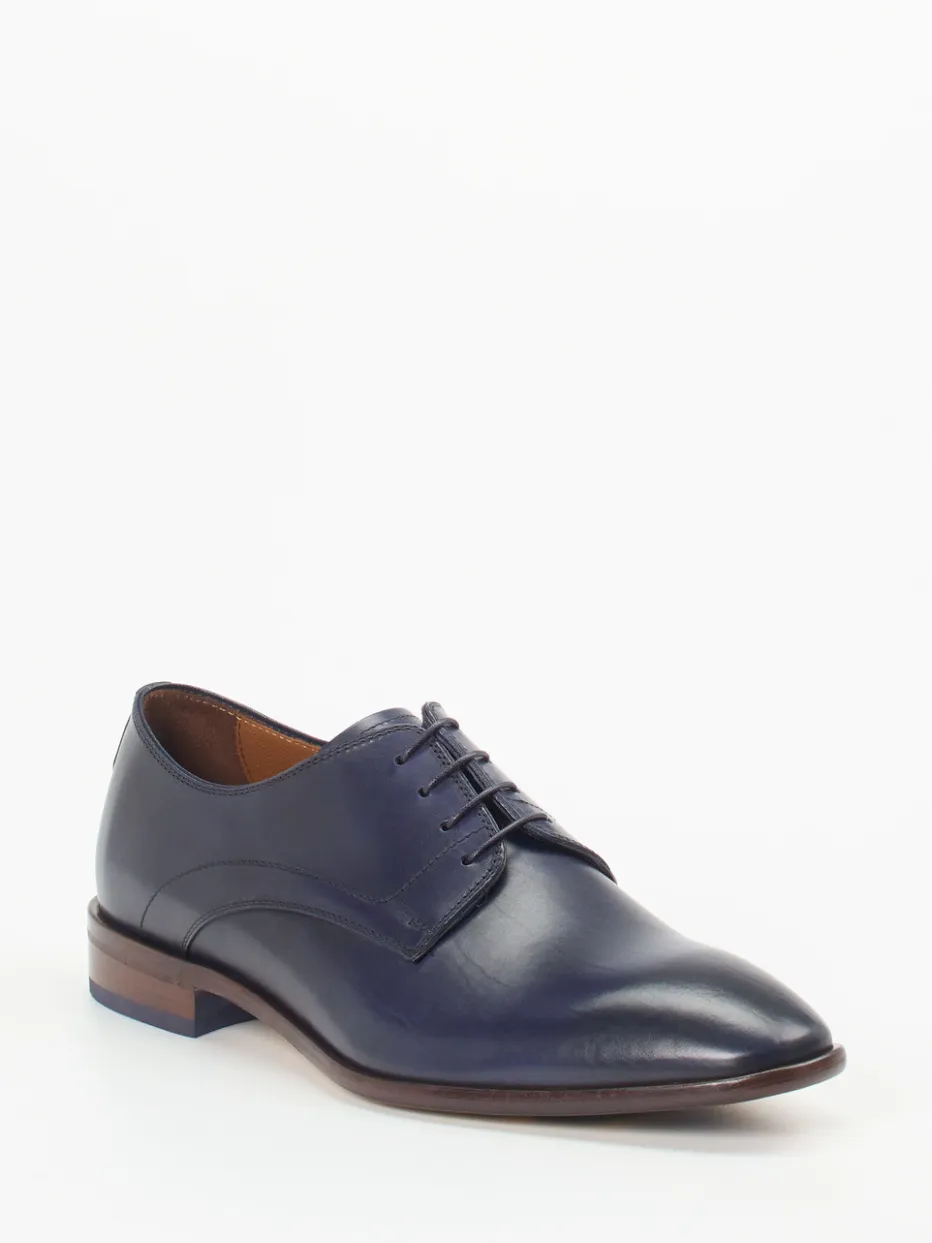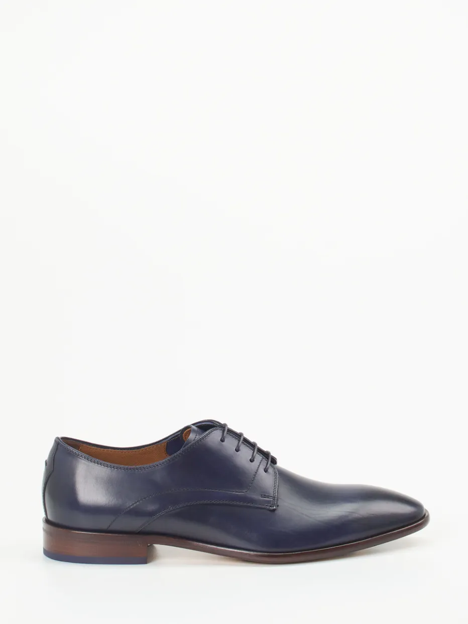 Eleganz im Detail.Ralph Harrison Edition präsentiert mit diesem Derby-Schnürschuh einen stilvollen Begleiter für Business und gehobene Anlässe. Der in glänzendem, nachtblauem Kalbleder gefertigte Schnürer überzeugt durch eine schmal zulaufende Silhouette und markante, kontrastfarbene Gummielemente in der Laufsohle. Die klassische 5-Loch-Schnürung und das fein gearbeitete Innenfutter aus Leder unterstreichen die hochwertige Ausführung. Inspiriert vom Minimalismus, passt er ideal zu Anzügen und eleganten Stoffhosen. Die Kombination aus Ledersohle und rutschhemmenden Gummipartien sorgt für Stabilität und Tragekomfort. Ein Schnürschuh, der klassische Form mit dezenter Modernität vereint.
