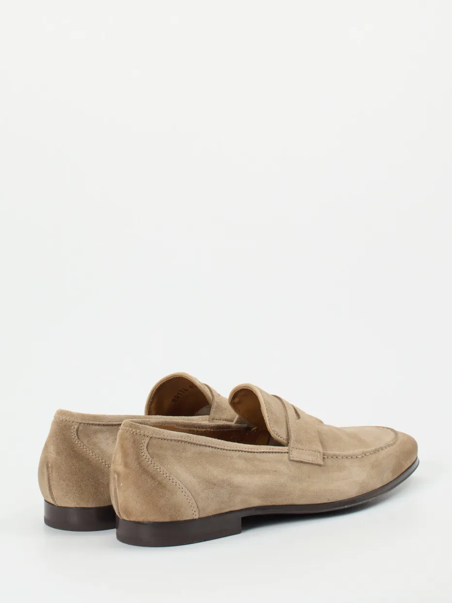 Ralph Harrison kombiniert hochwertiges Veloursleder mit einem klassisch-minimalistischen Schnitt in ruhigem Beigebraun – ein Loafer für stilbewusste Herren mit Sinn für Understatement.