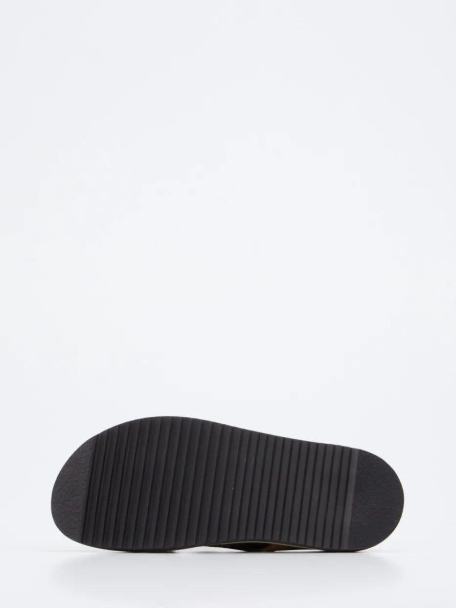 Das hochwertige Veloursleder mit regulierbarem Kreuzriemen trifft auf ein anatomisches Fußbett – ideal für entspannte Sommertage in stilvollem Komfort.