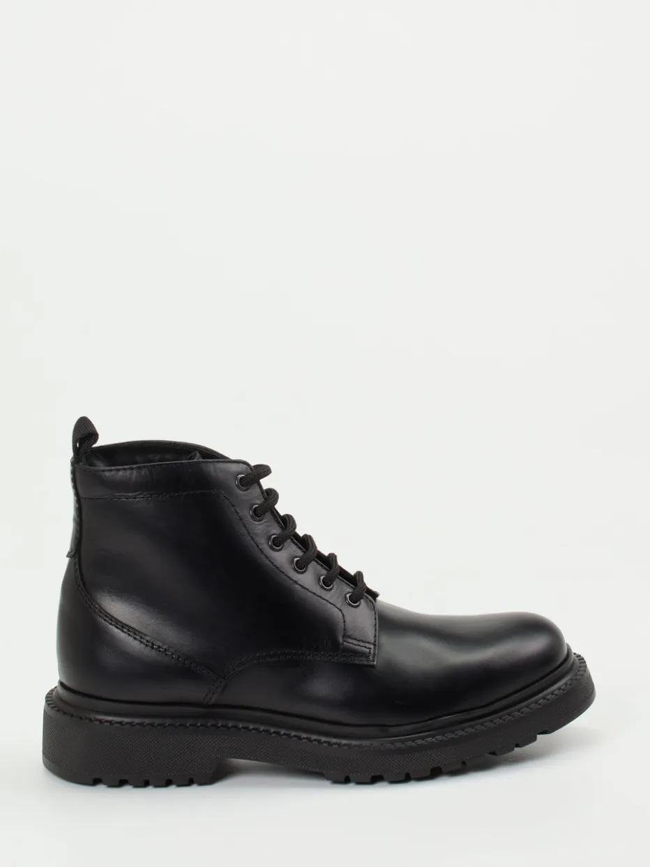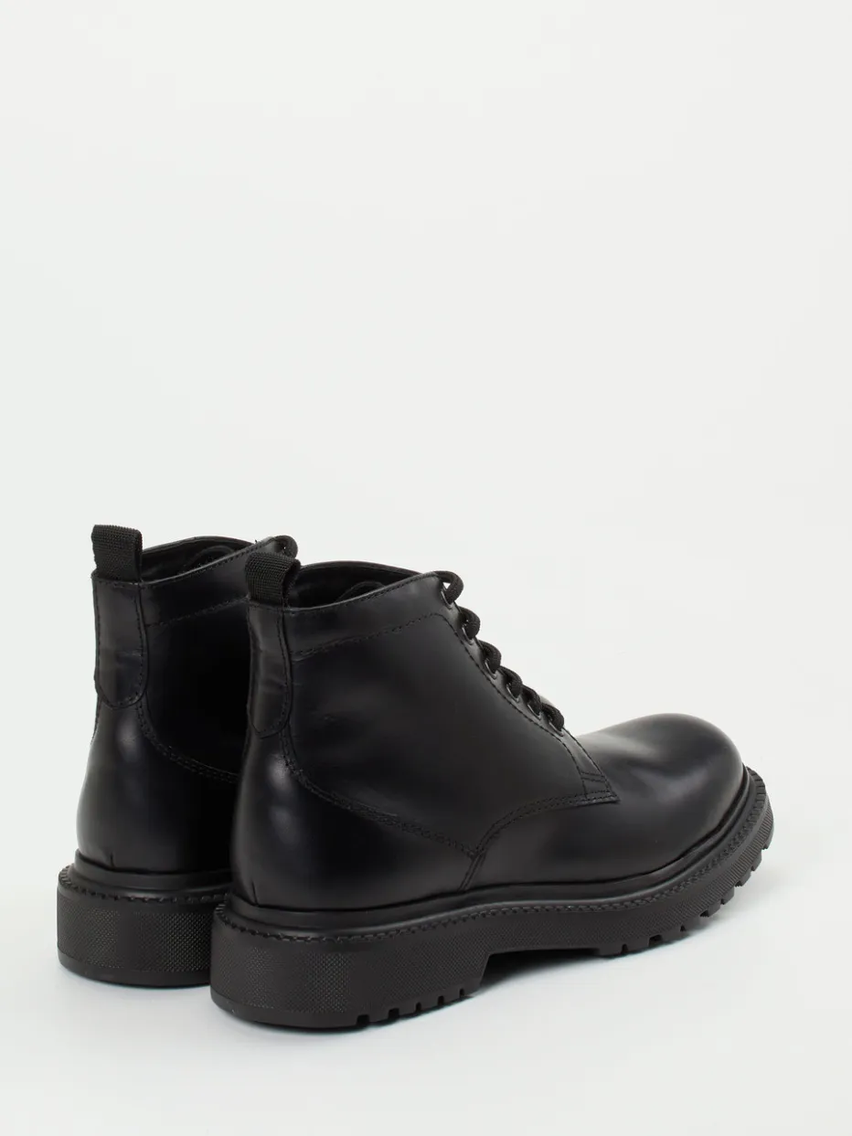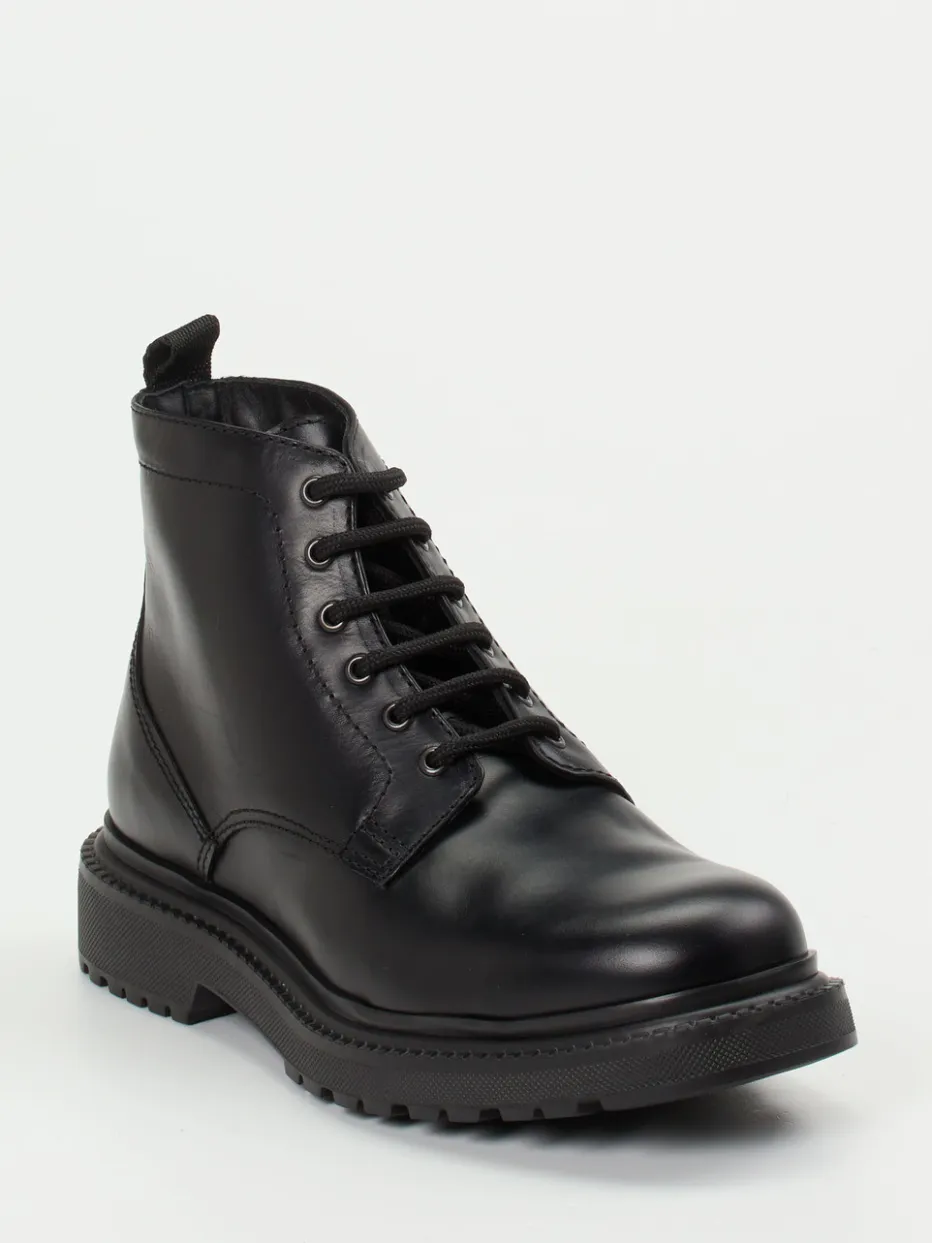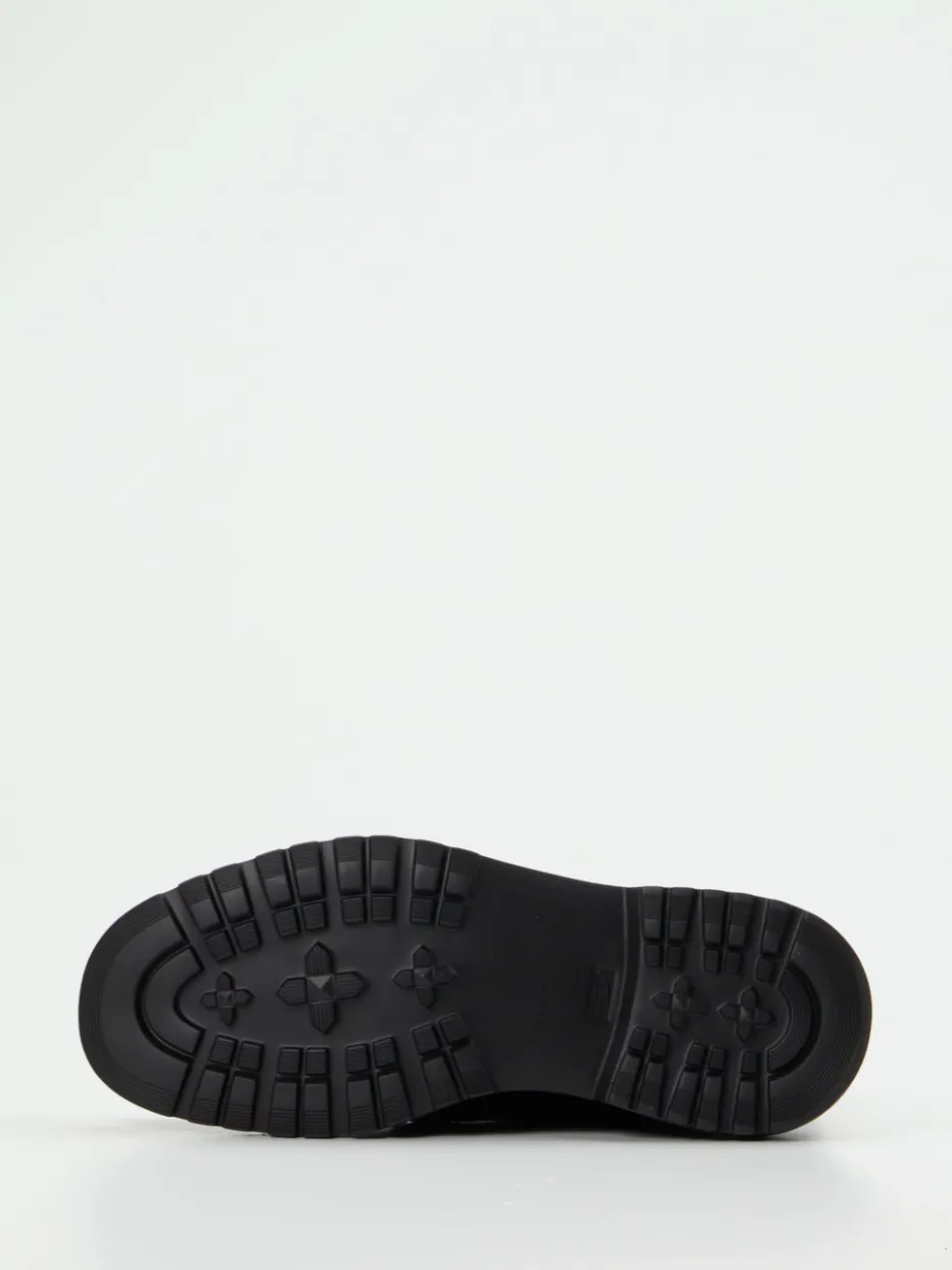 Bei kühlen Temperaturen ein treuer Begleiter: Das schwarze Fettleder mit leicht glänzender Oberfläche ist wind- und wasserabweisend und harmoniert mit der robusten, profilierten Gummisohle. Die klare, klassische Silhouette, die tonigen Nähte und die markante Sechsloch-Schnürung unterstreichen den Combat-Look mit Utility-Charakter. Der hinten angebrachte Zugriemen sorgt für Komfort beim Anziehen, das wärmende Textilfutter für angenehmes Fußklima. Ideal zu Cargohosen oder Lederjacke – für urbane Freizeitlooks mit funktionalem Anspruch.