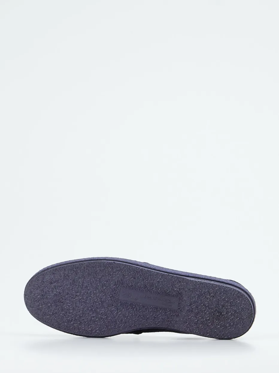 Sommerleicht und stilbewusst.Die Marke Rivieras bietet mit diesen Herren-Slip-Ons eine moderne Interpretation klassischer Espadrilles. Für entspannte Tage zwischen City und Küste liefern diese Slipper aus dunkelblauem Textil mit luftdurchlässiger Meshstruktur den passenden Komfortfaktor. Ihre flache, runde Form kombiniert sich mit einer flexiblen Gummisohle und einer herausnehmbaren, perforierten Innensohle. Elastische Einsätze an der Lasche sorgen für eine mühelose Schlupfform und optimalen Halt. Minimalistische Details wie das Ton-in-Ton-Finish sowie ein kleines seitliches Metall-Logo unterstreichen den Streetwear-Einfluss. Besonders stimmig zu Chino-Shorts und Basic-Shirts. Maximaler Komfort trifft sommerliche Leichtigkeit in kompromissloser Markenqualität.