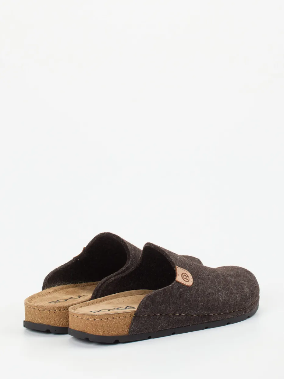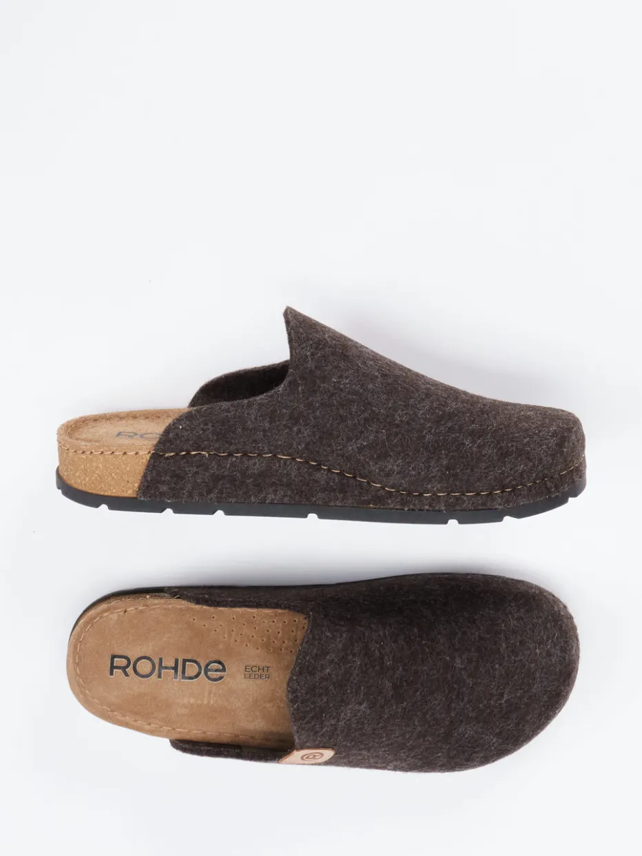 Wohlfühlen beginnt im Detail.Rohde präsentiert mit diesem Hausschuh-Clog ein Modell für entspannte Momente. Ob zum morgendlichen Kaffee oder an entspannten Abenden: Der dunkelbraune Clog aus atmungsaktivem Filz überzeugt mit seiner geschlossenen Vorderpartie, offener Ferse und einem weichen, ergonomisch geformten Fußbett. Filzige Materialstruktur und feine Kontrastnähte unterstreichen das puristische Design. Die rutschhemmende Gummisohle sorgt für Trittsicherheit auf glatten Böden. Als Teil des „Natural Comfort AW24“-Trends passt der Schuh perfekt zu Wollsocken und Loungewear. Rohde verbindet nachhaltige Materialien mit hochwertiger Verarbeitung für maximalen Tragekomfort.