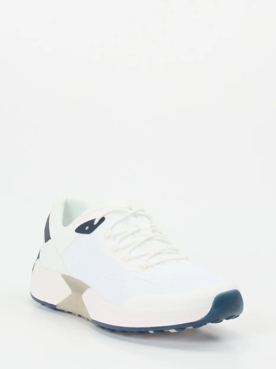 Technologie trifft Leichtigkeit.Der Performance-Sneaker von rollingsoft präsentiert sich als funktionaler Begleiter mit sportlichem Anspruch. Ideal für aktive Tage überzeugt der Sneaker durch atmungsaktives Textil in Weiß, ergänzt durch minimalistische Kontrastdetails in Dunkelblau. Die markentypische Roll-Off-Sohle mit multidirektionalem Noppenprofil sorgt für stoßgedämpftes, gelenkschonendes Abrollen. Die sportlich-dynamische Silhouette, gepolsterte Einstiegszonen sowie ein verstärkter Fersenbereich optimieren Tragekomfort und Halt. Stilistisch unterstützt das saubere Design aktuelle Tech-Runner- und Clean-Aesthetic-Trends. Kombiniert bestens mit sportiven Freizeitlooks. rollingsoft vereint Komfort-Innovation mit klarer Formensprache für bewegungsfreies Gehen.